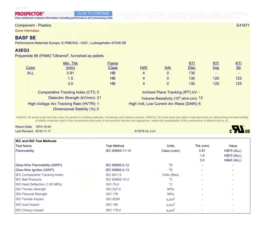 高刚性 耐热老化 电气元件 机器/机械部件 绝缘材料