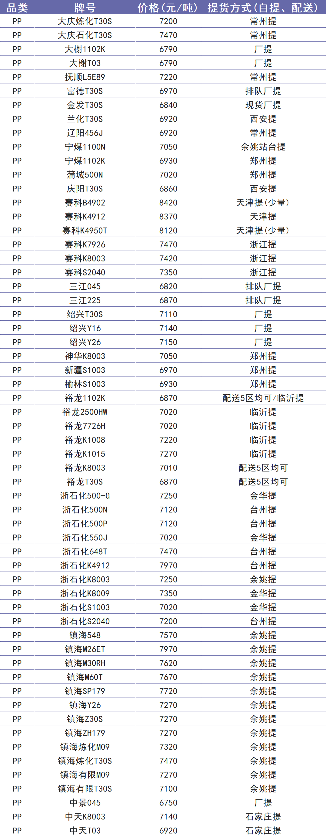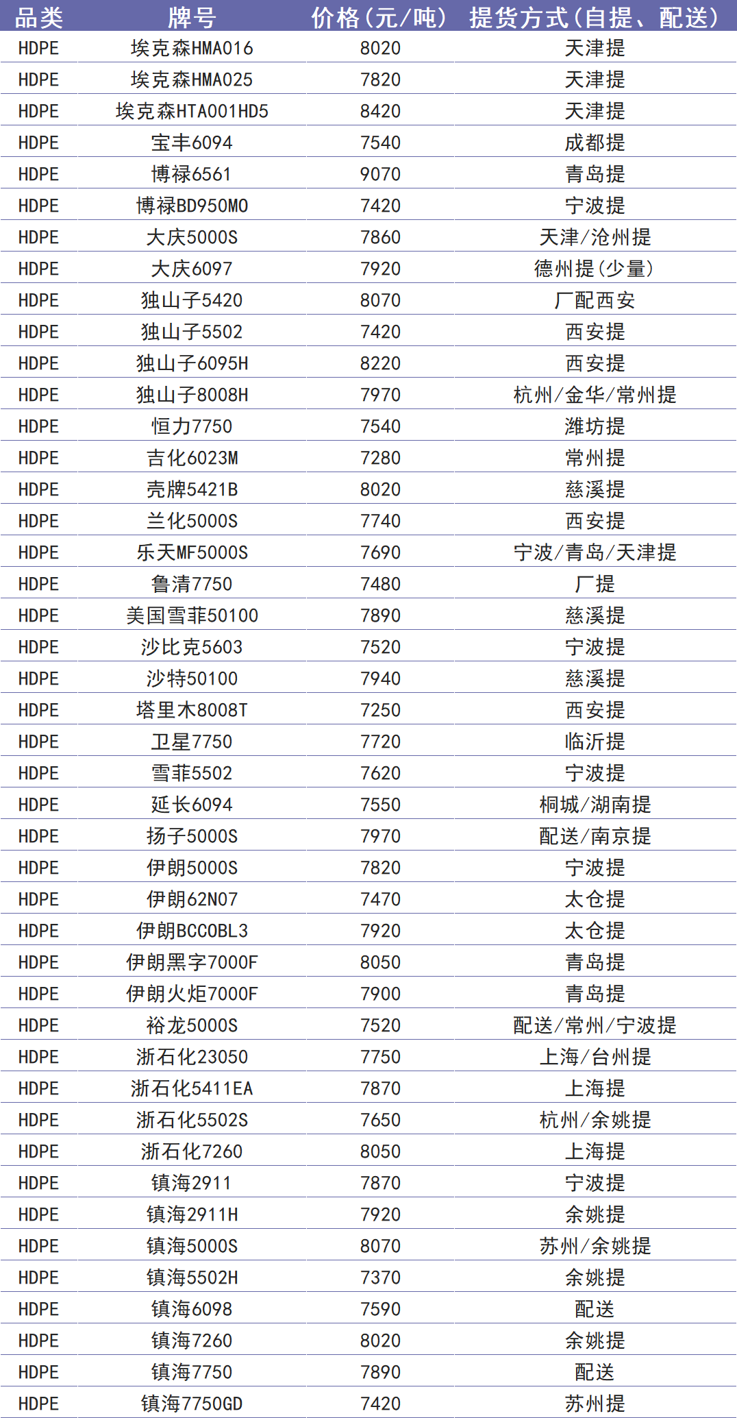 今日塑价