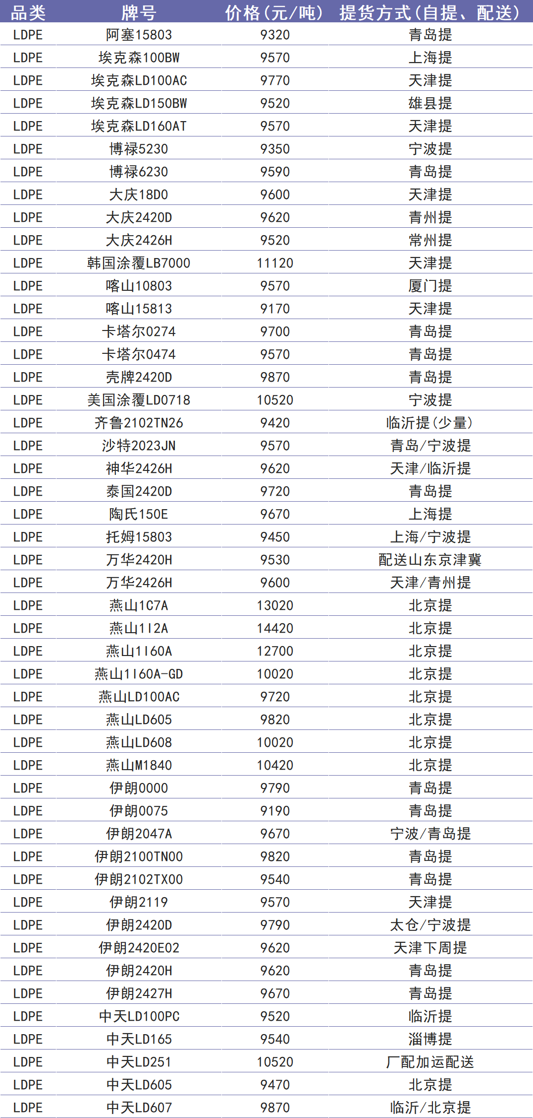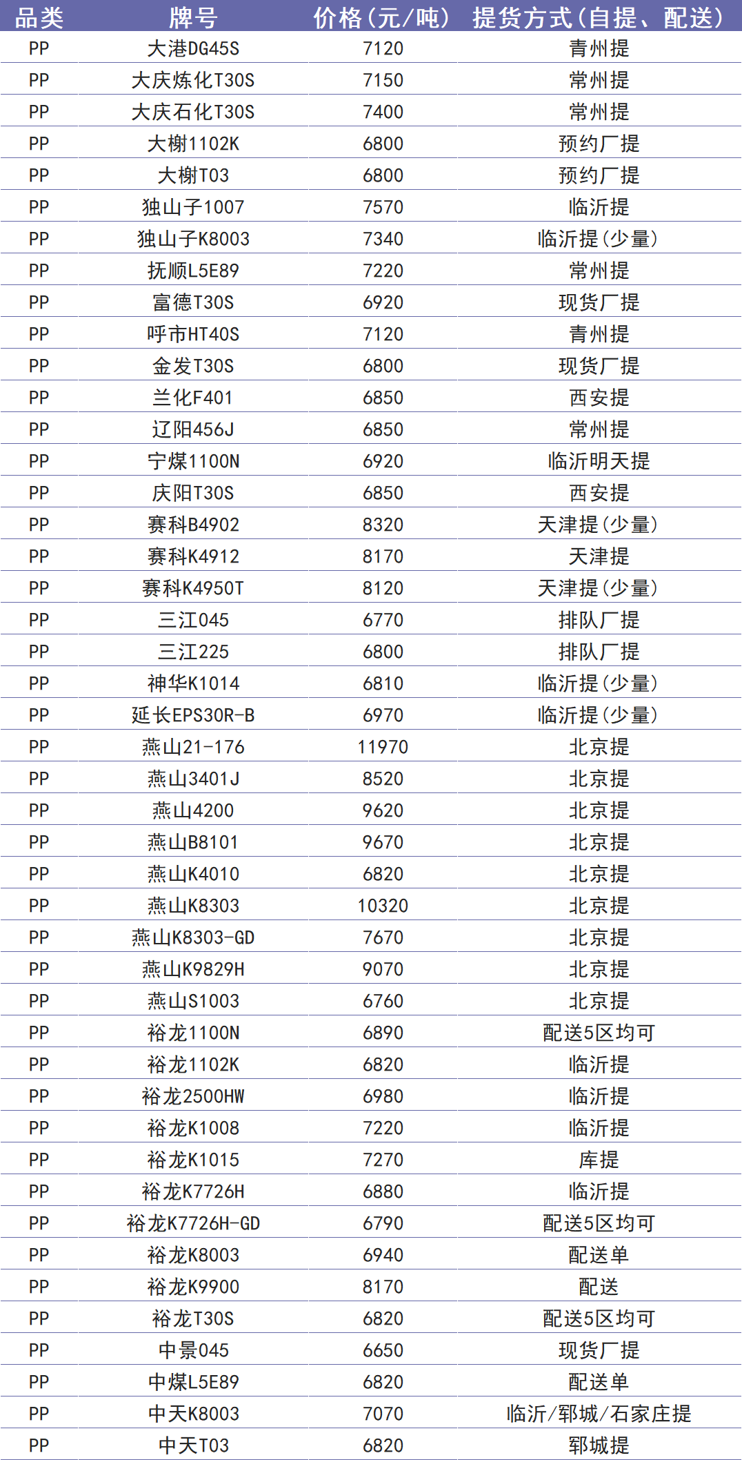 今日塑价