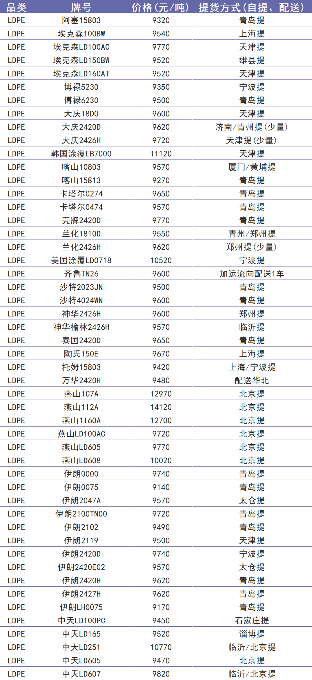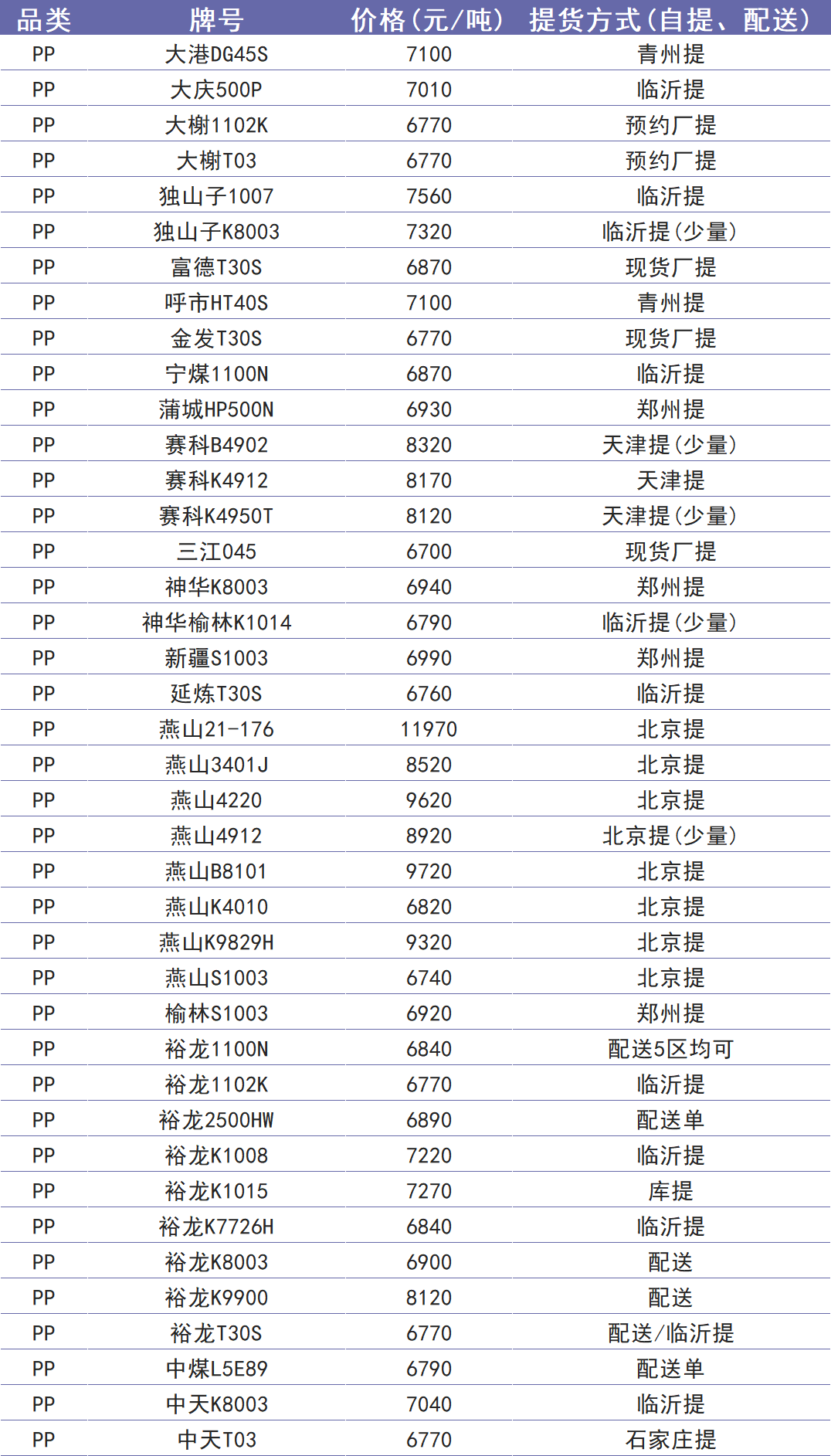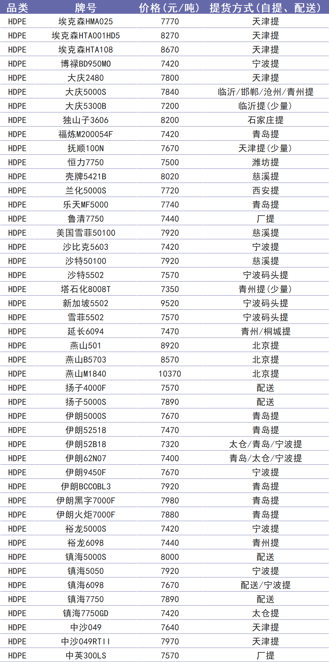 今日塑价