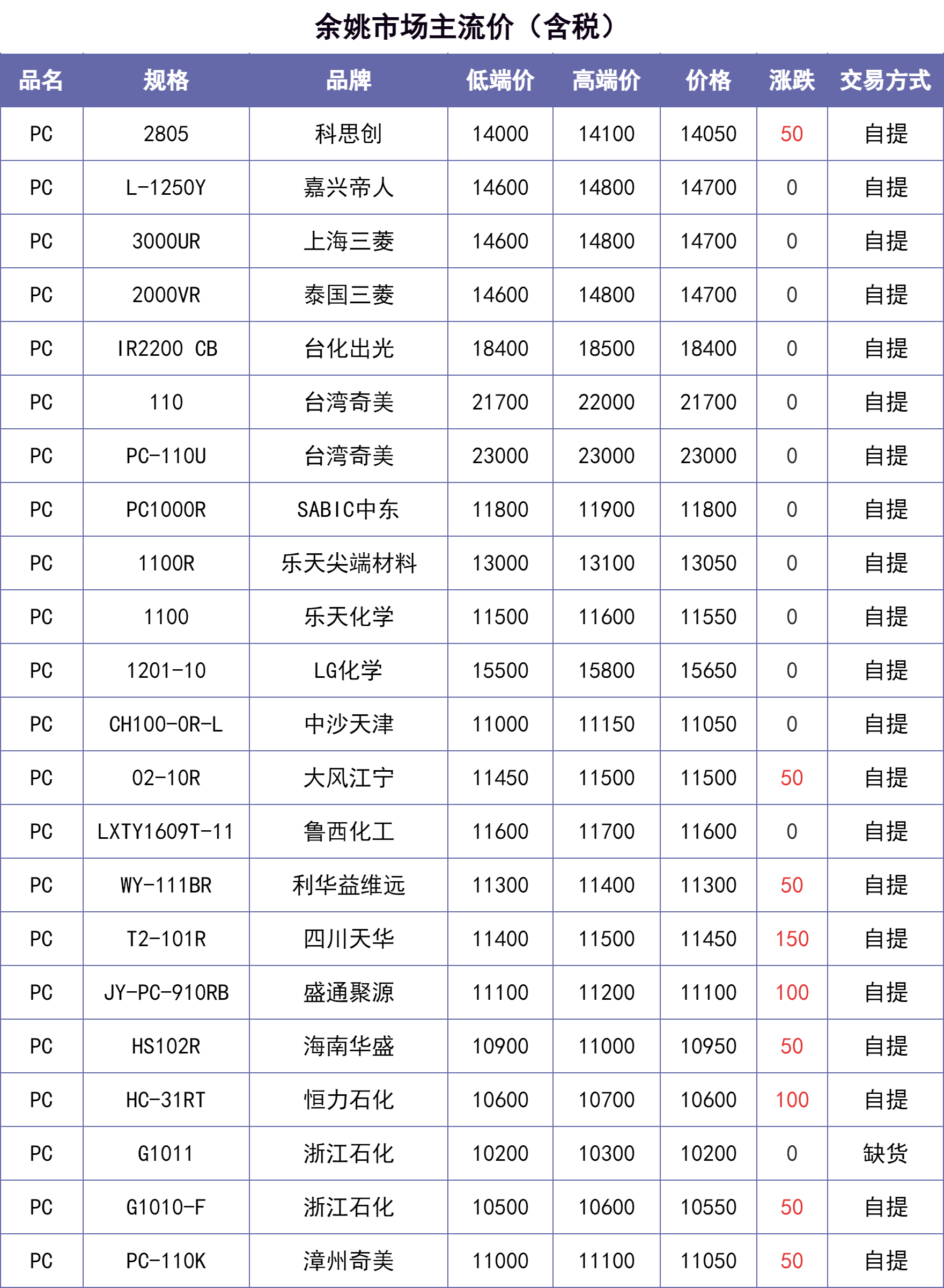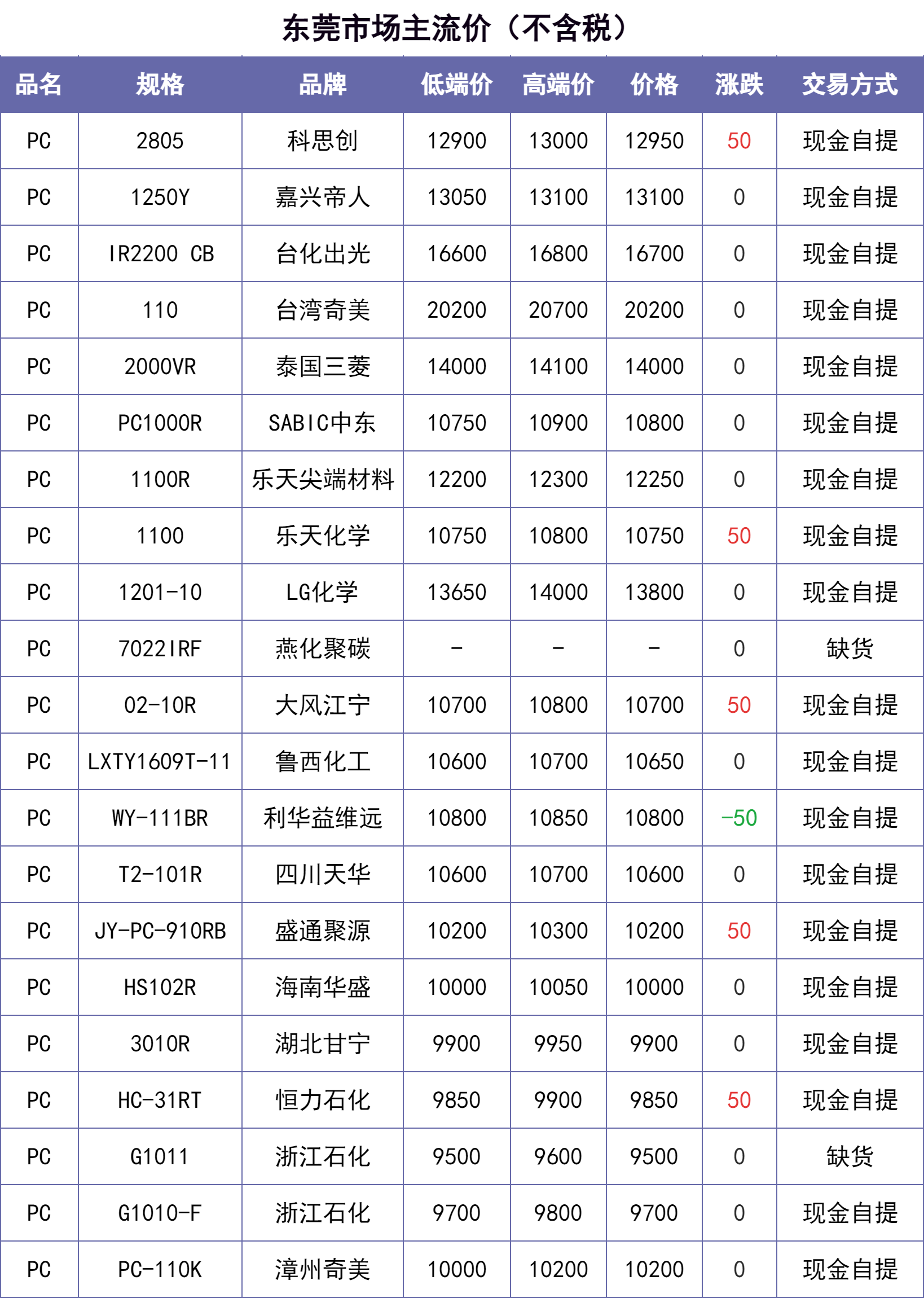 说明:除特别备注说明外,东莞、汕头等华南地区市场价默认不含税,其他地区含税。【每日新价】来源当地本土市场主流价汇总,每日12:00之前更新。不排除下午市场价格发生变化的可能。仅供参考~