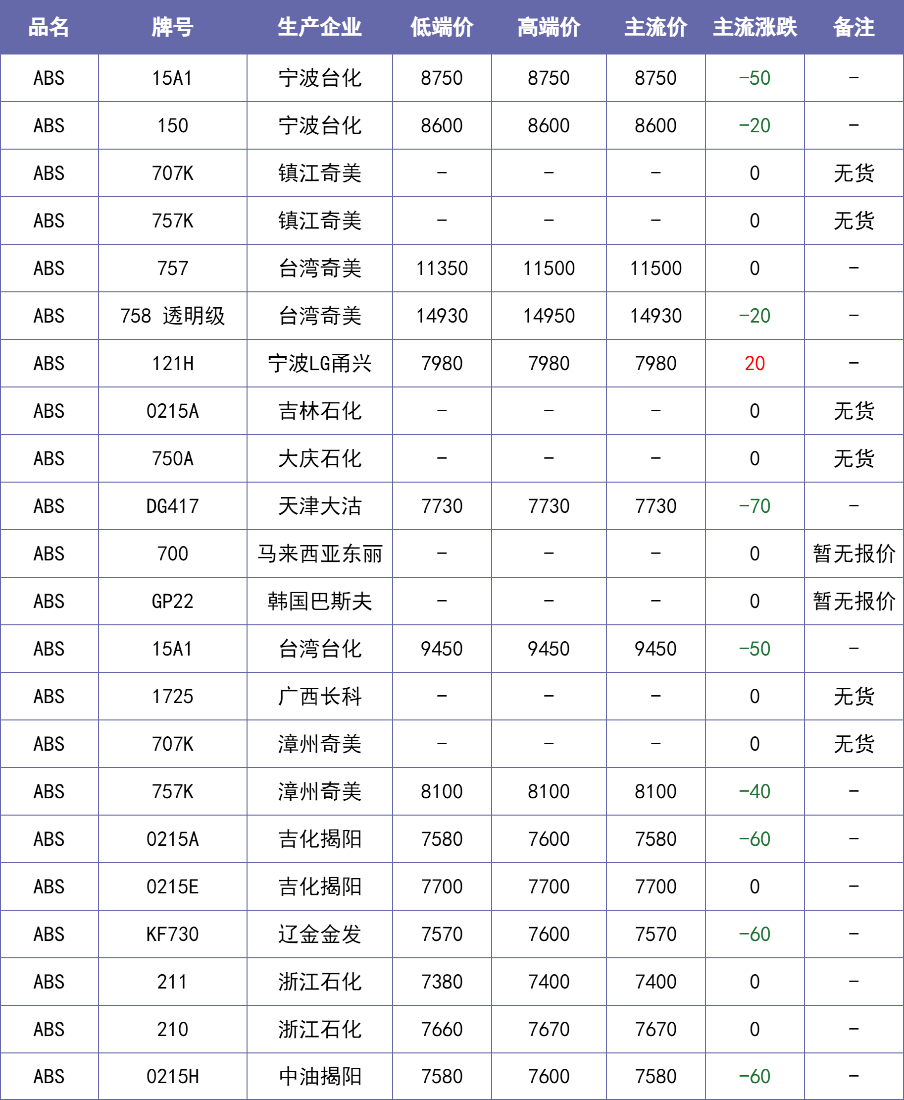 说明:除特别备注说明外,东莞、汕头等华南地区市场价默认不含税,其他地区含税。【每日新价】来源当地本土市场主流价汇总,每日12:00之前更新。不排除下午市场价格发生变化的可能。仅供参考~