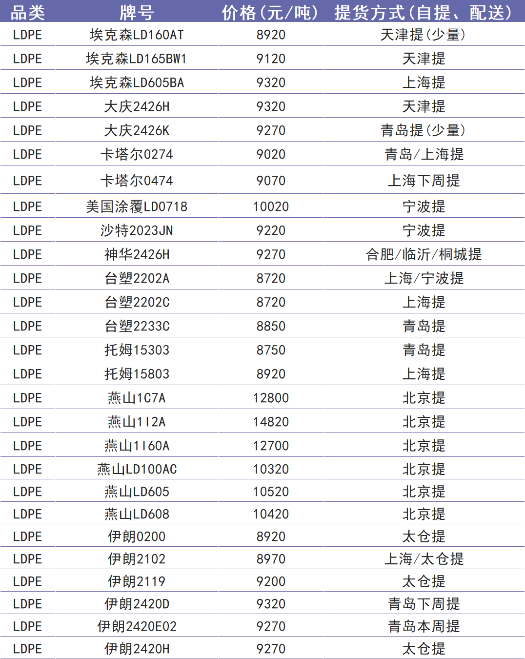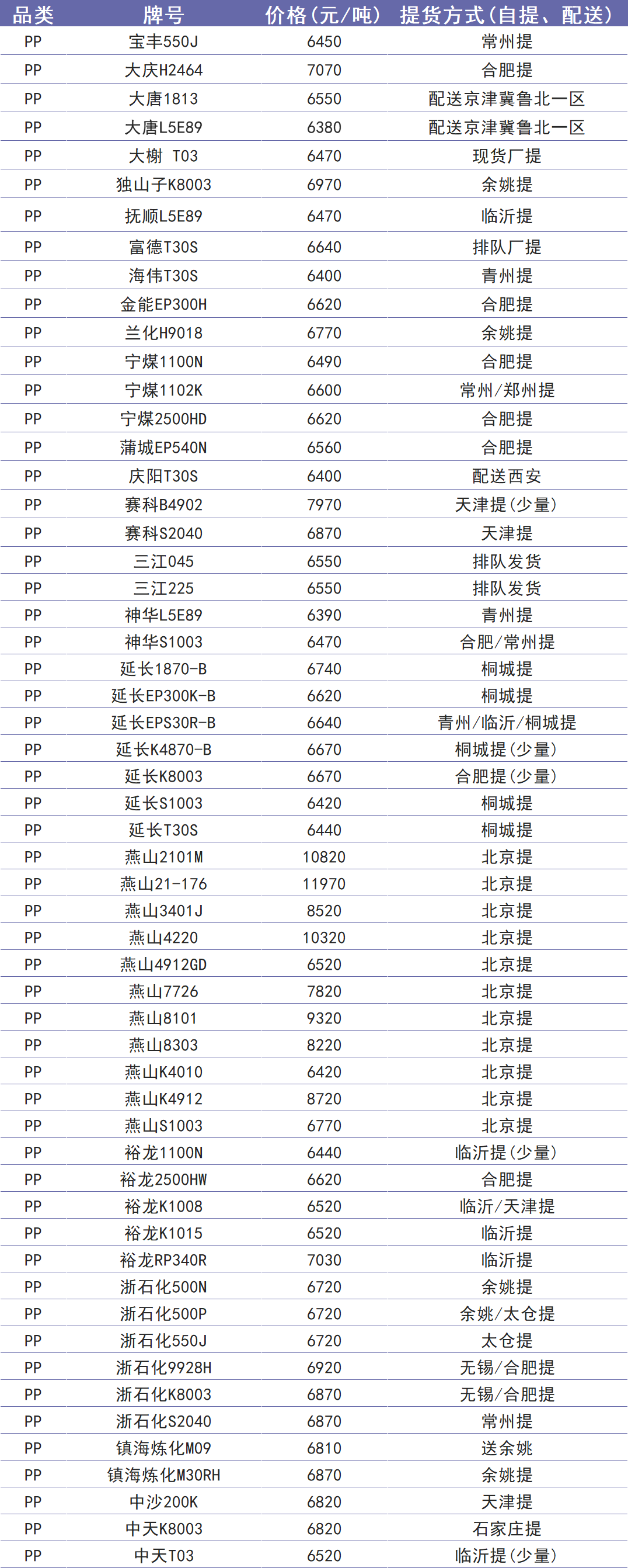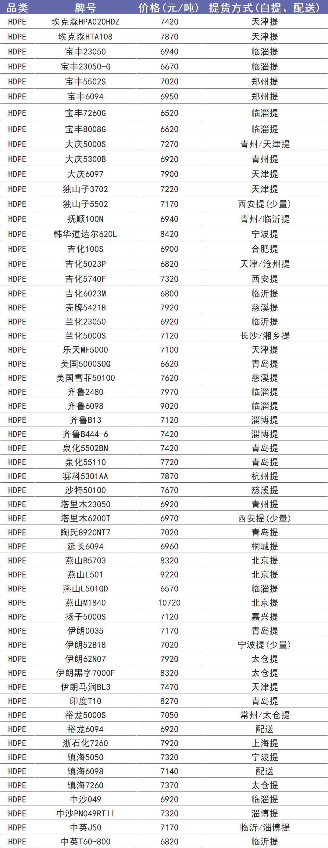 今日塑价