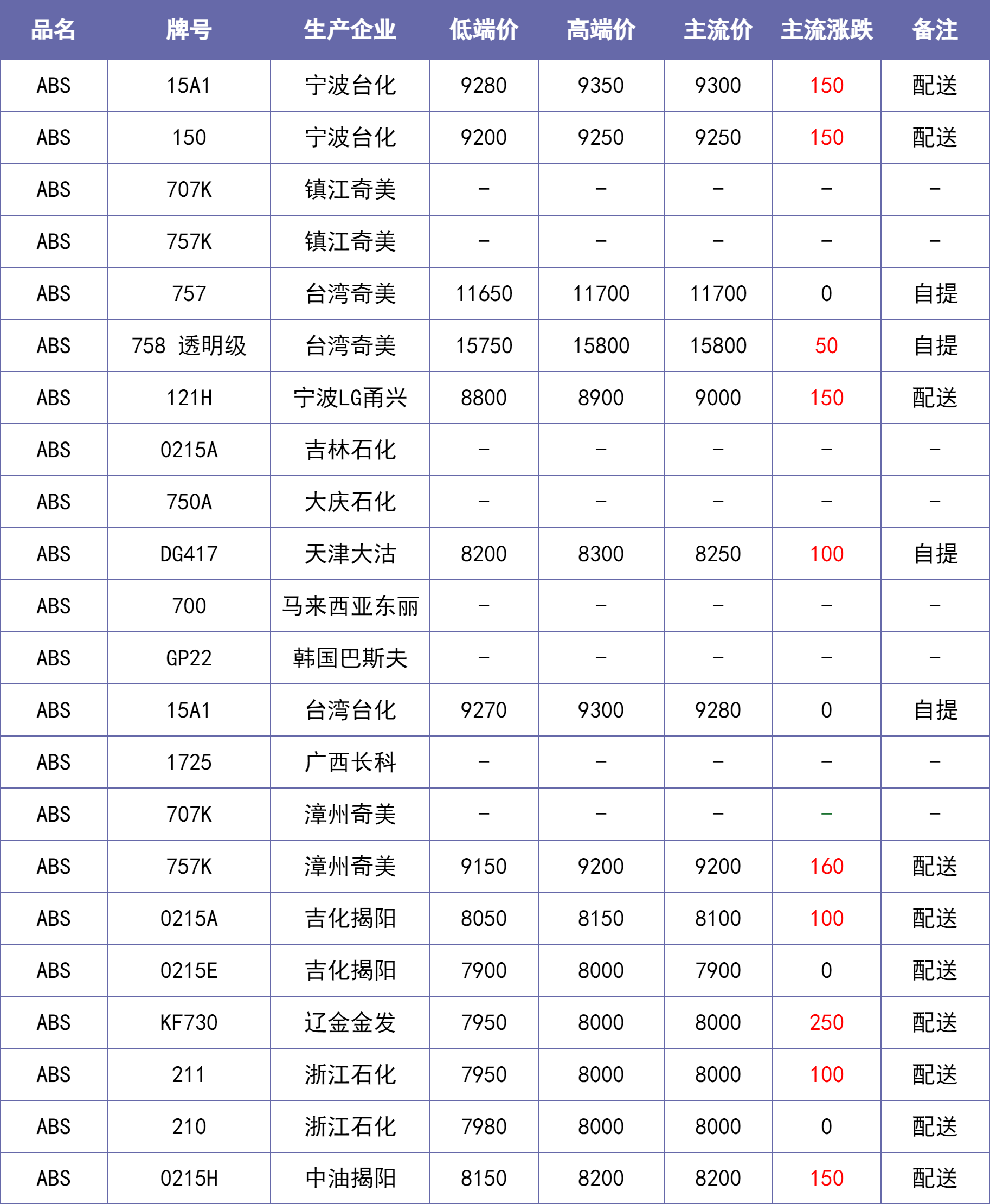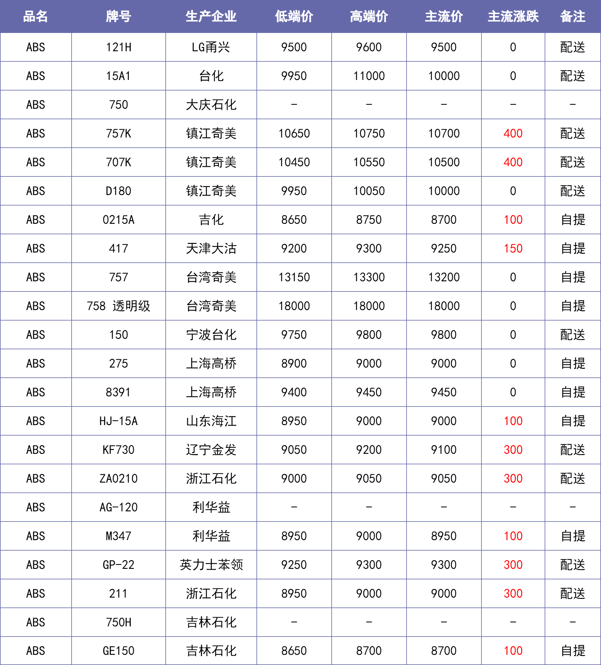 1月23日上午,国内ABS市场价上涨,主流市场价格波动50-400元/吨。