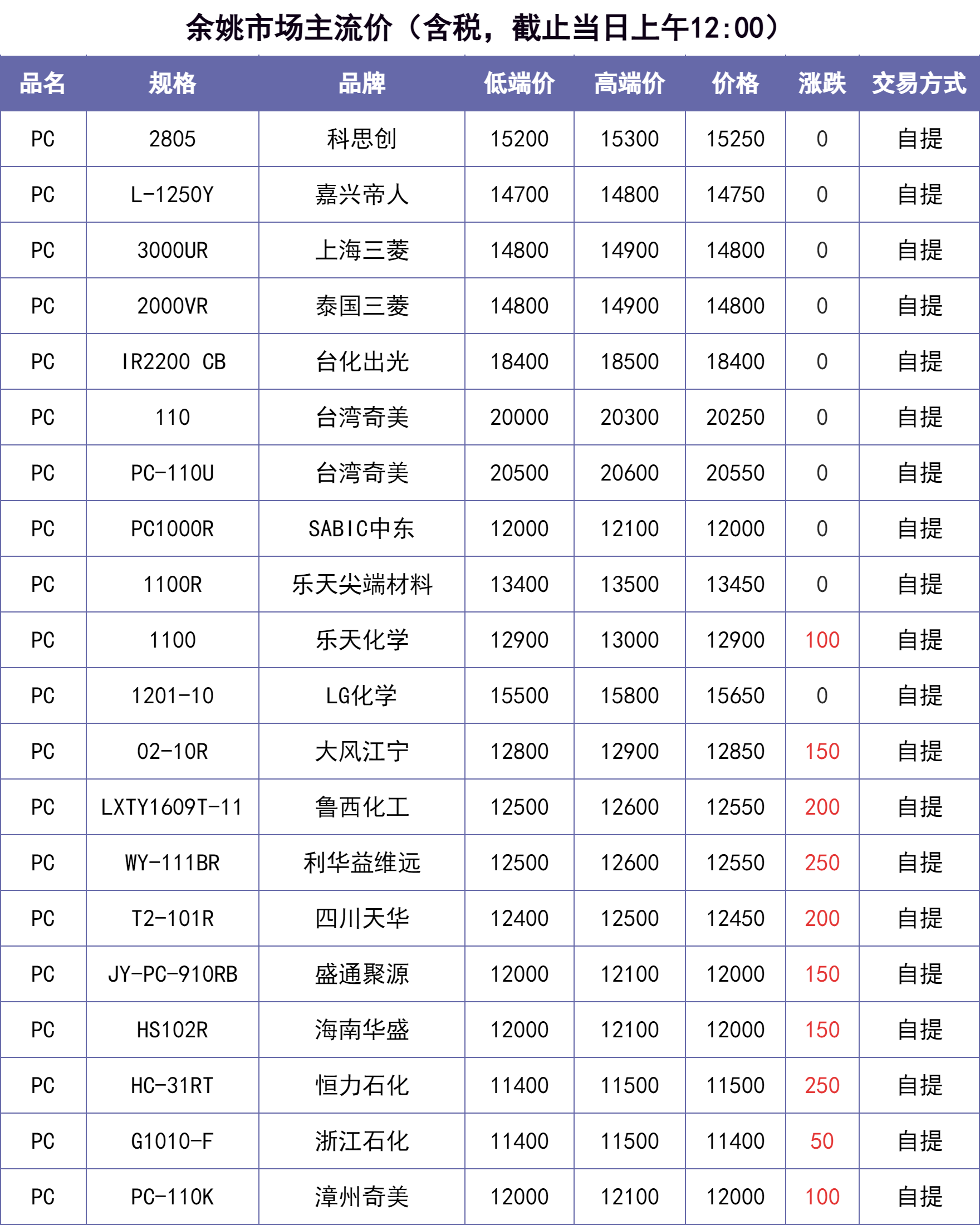 1月27日上午,国内PC主流市场价上涨,价格波动50-300元/吨。