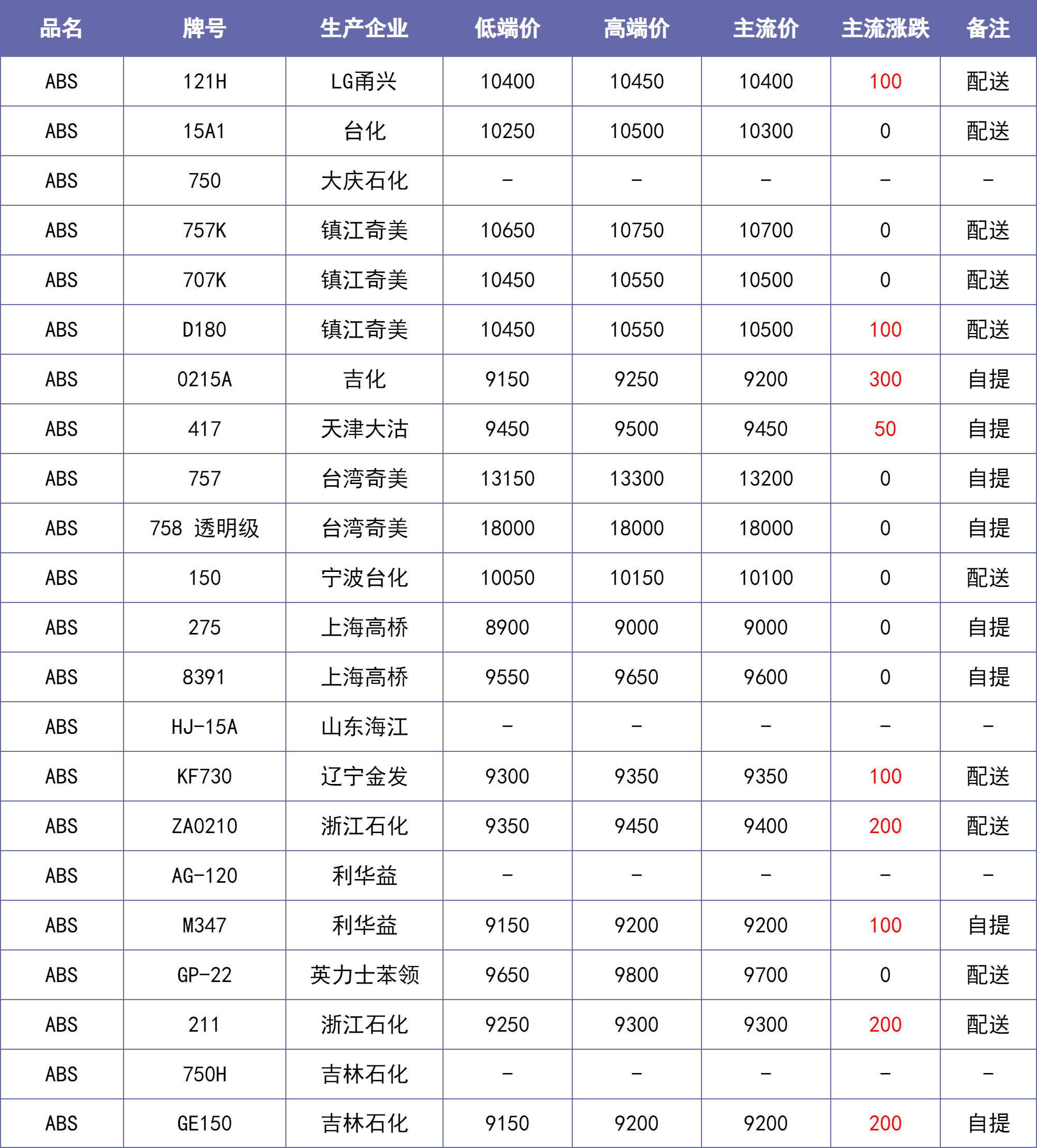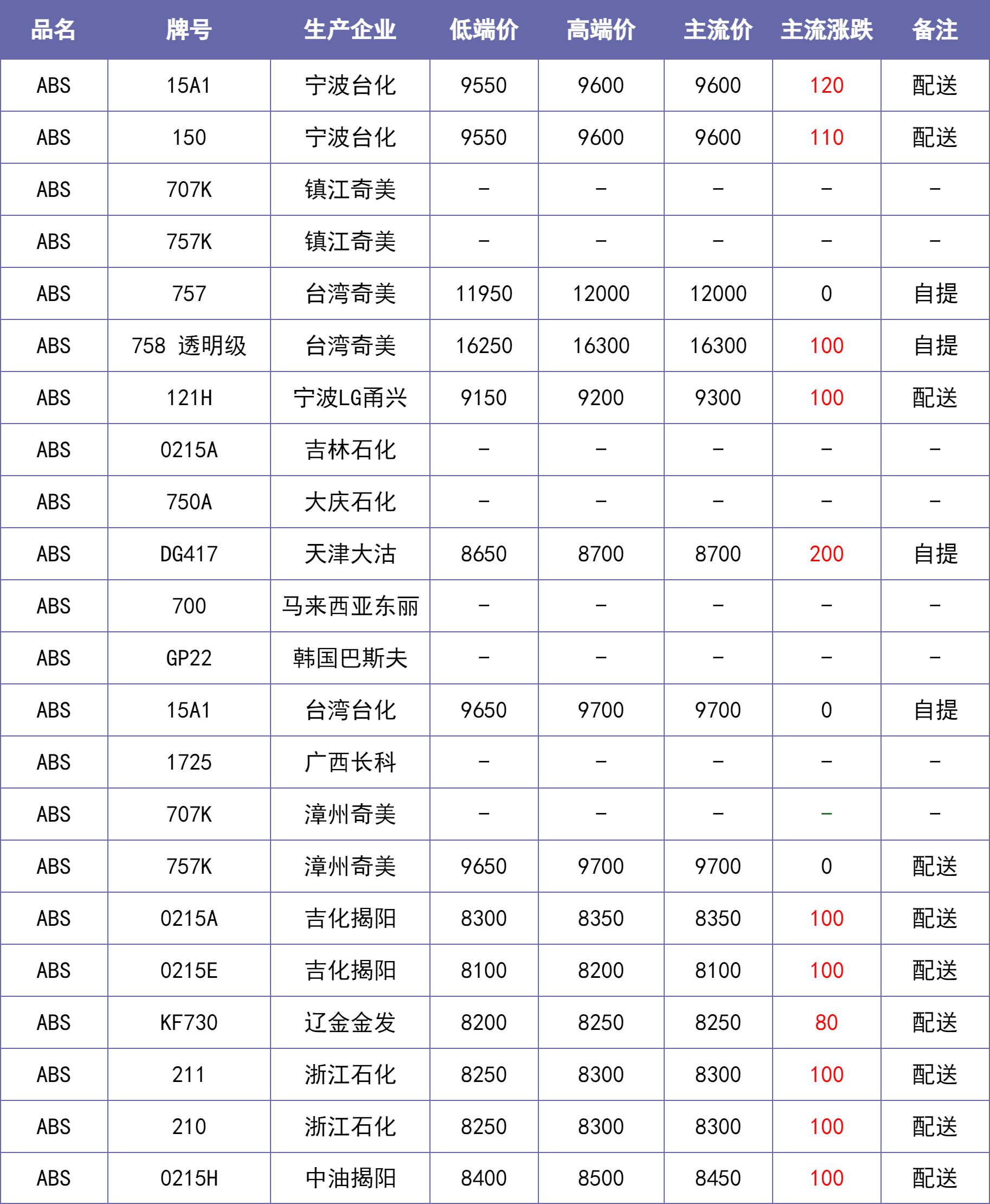 说明:除特别备注说明外,东莞、汕头等华南地区市场价默认不含税,其他地区含税。【每日新价】来源当地本土市场主流价汇总,每日12:00之前更新。不排除下午市场价格发生变化的可能。仅供参考~
