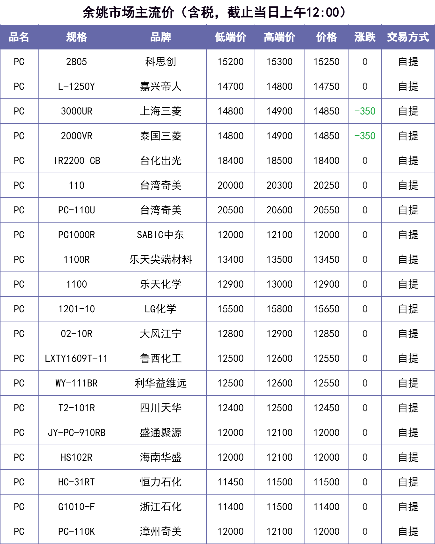 1月29日上午,国内PC主流市场价上涨,价格波动100-500元/吨。