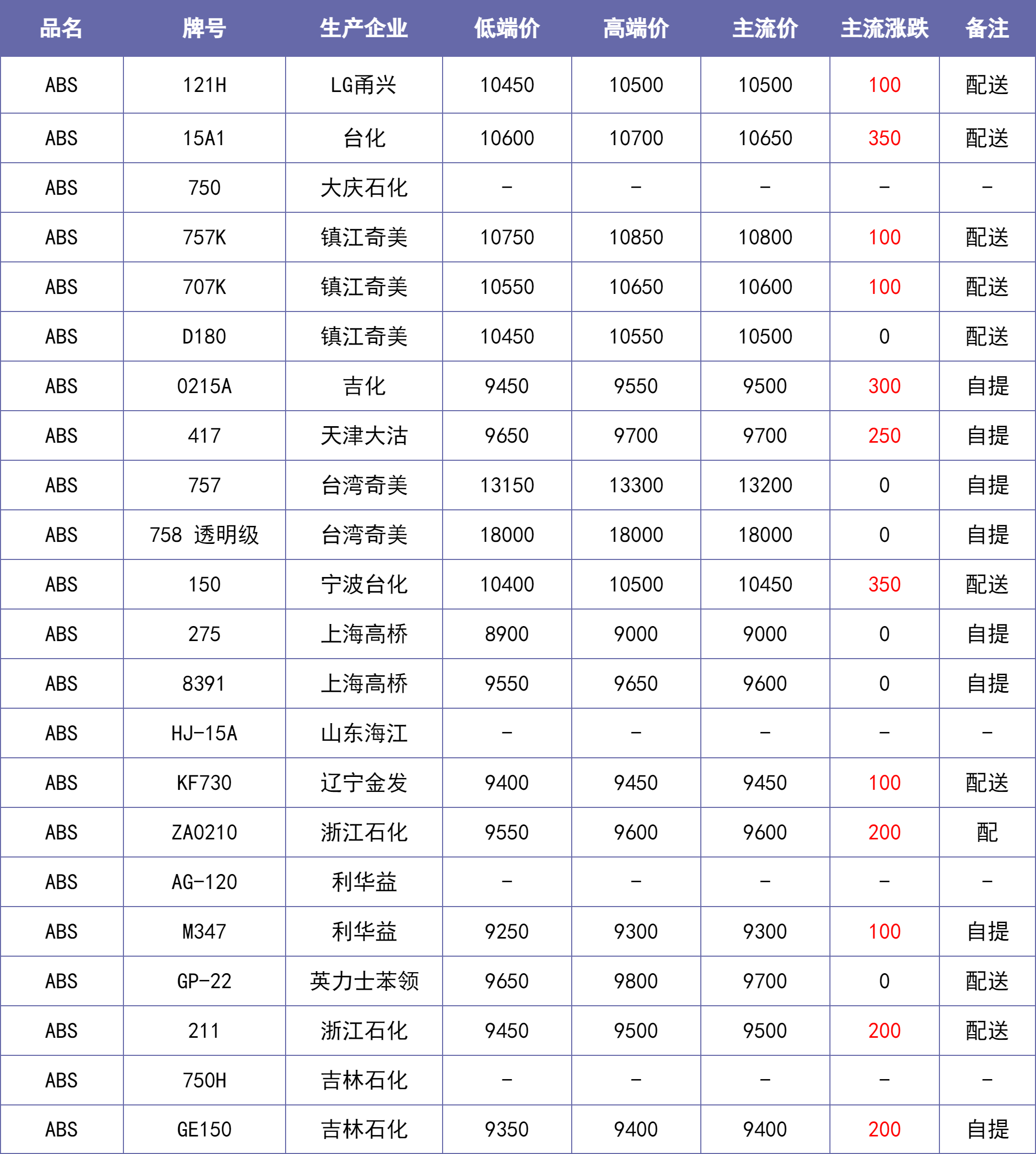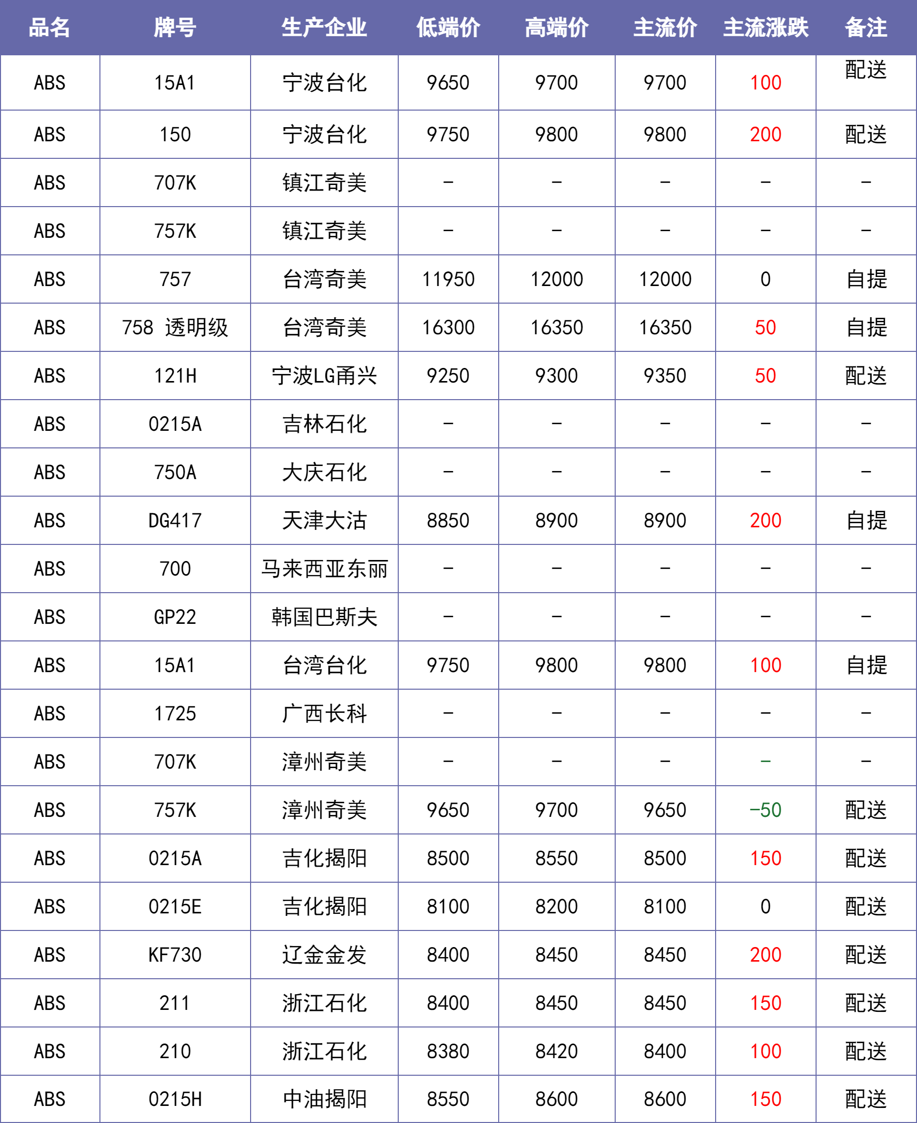 说明:除特别备注说明外,东莞、汕头等华南地区市场价默认不含税,其他地区含税。【每日新价】来源当地本土市场主流价汇总,每日12:00之前更新。不排除下午市场价格发生变化的可能。仅供参考~