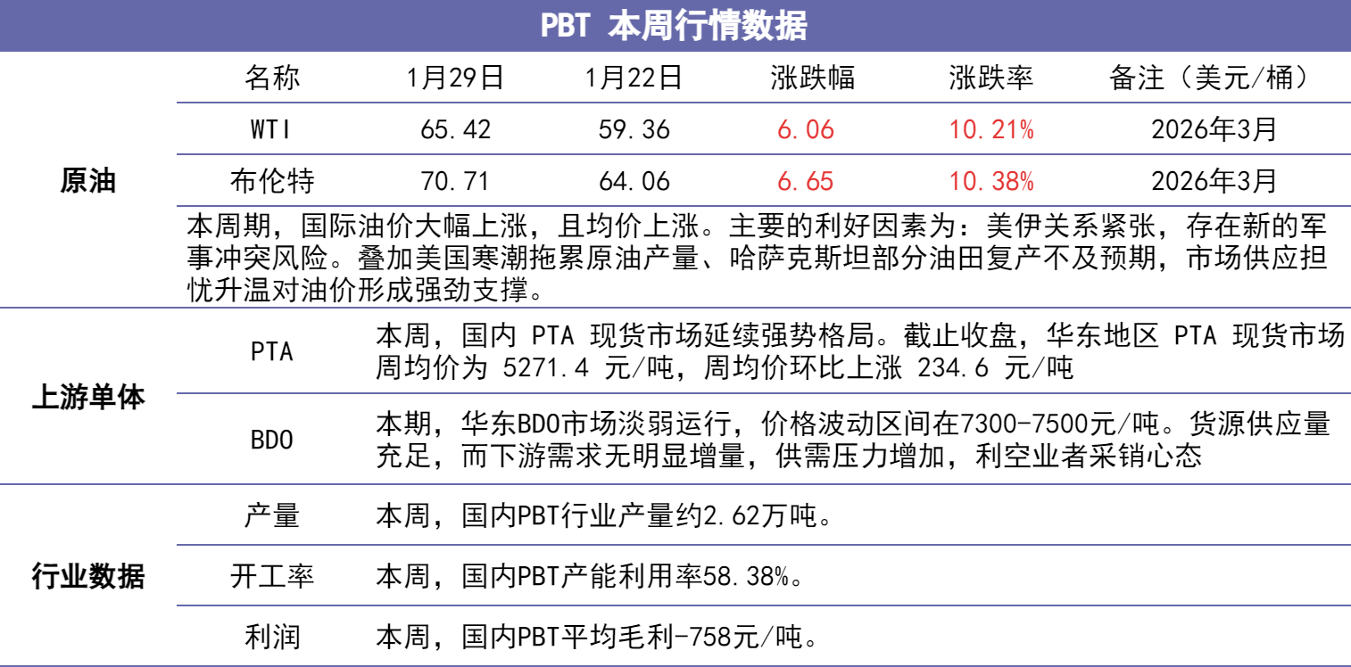 3.成本面:PTA市场维持偏强震荡格局;BDO临近春节假期,部分持货商出货心态增加,或拖拽市场重心稳中略下探,整体对PBT支撑一般。