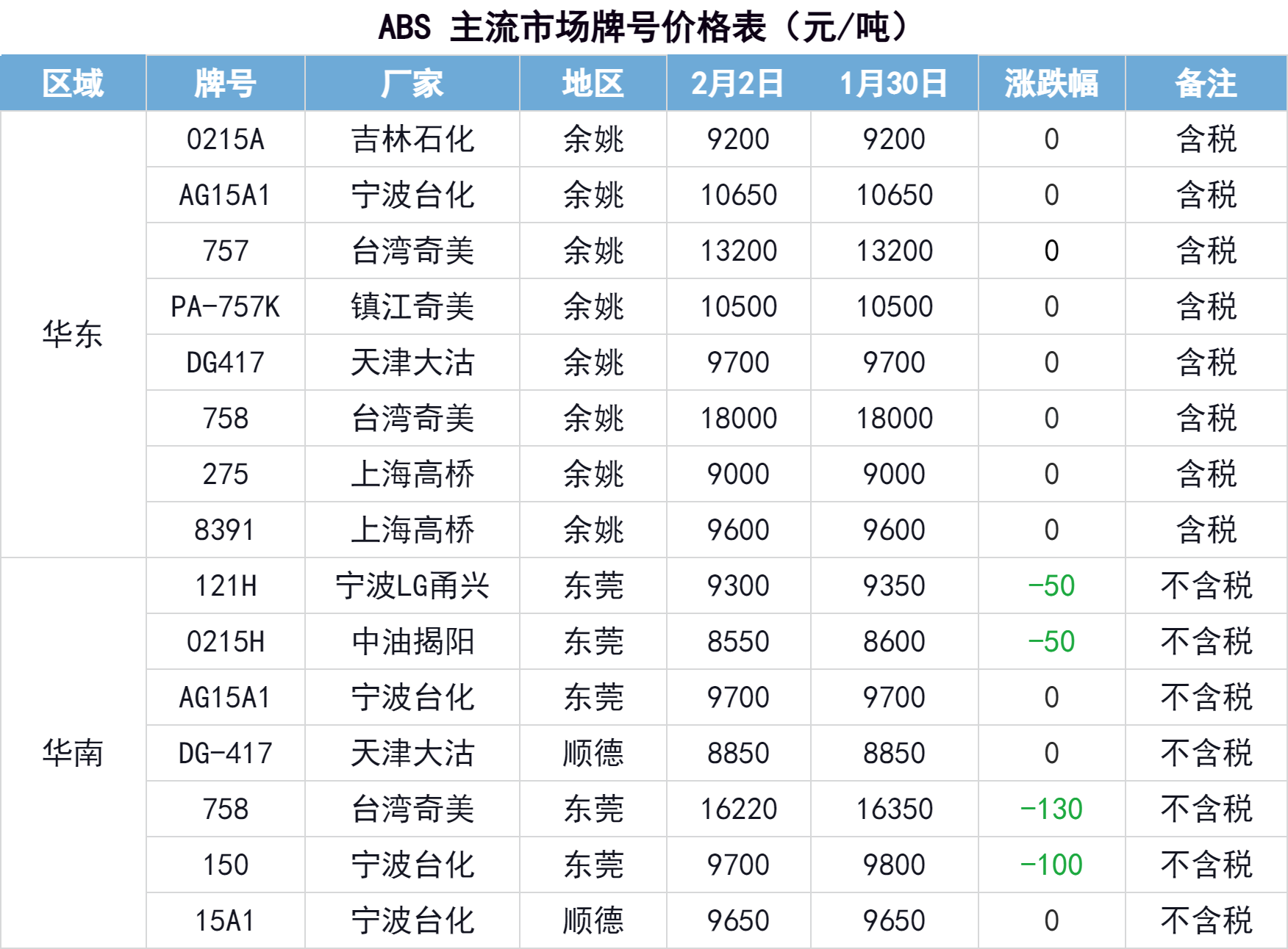 市场成交一般,厂家成本支撑力度一般,原料苯乙烯大跌影响业内心态,预计下一个工作日ABS市场价格下跌。