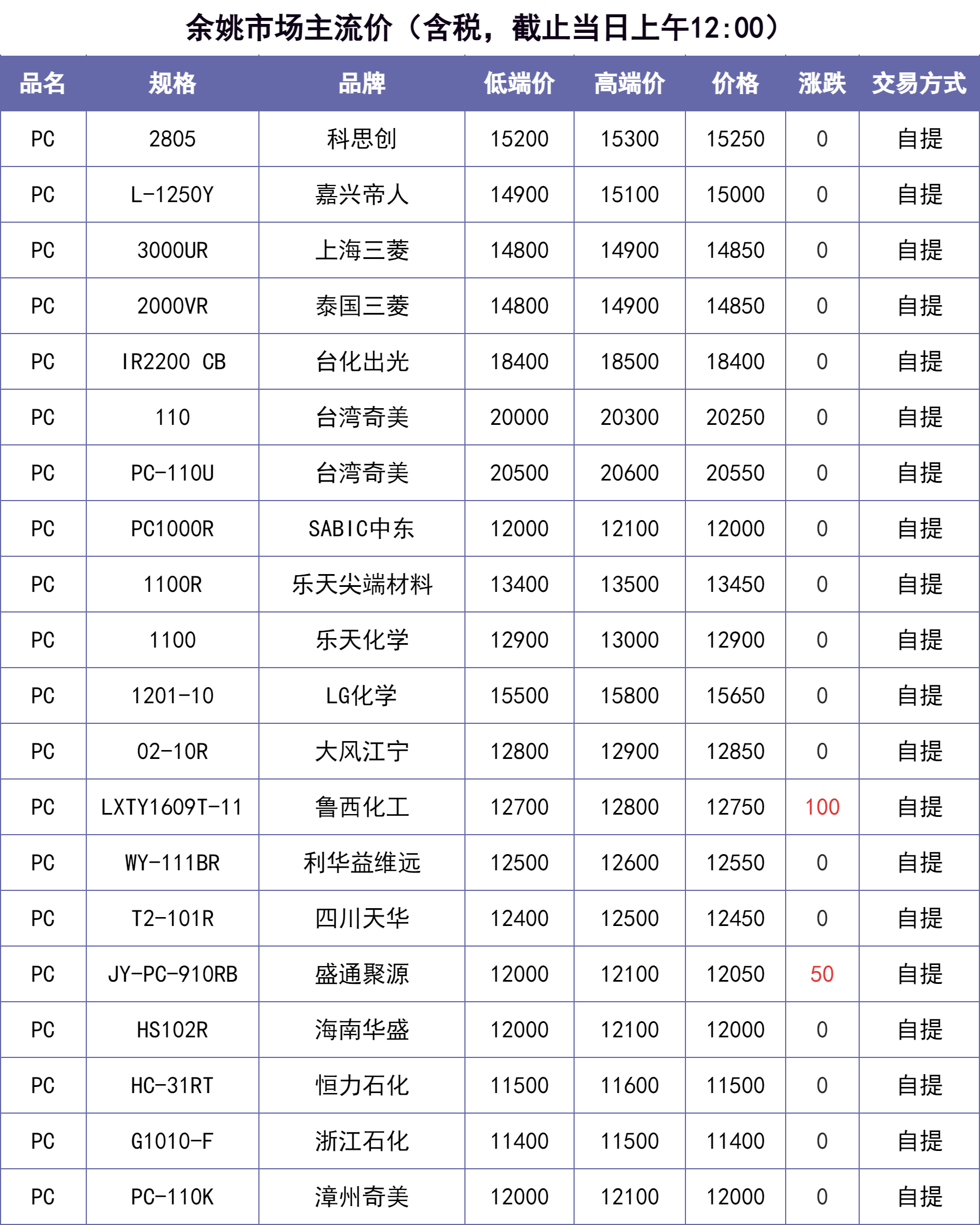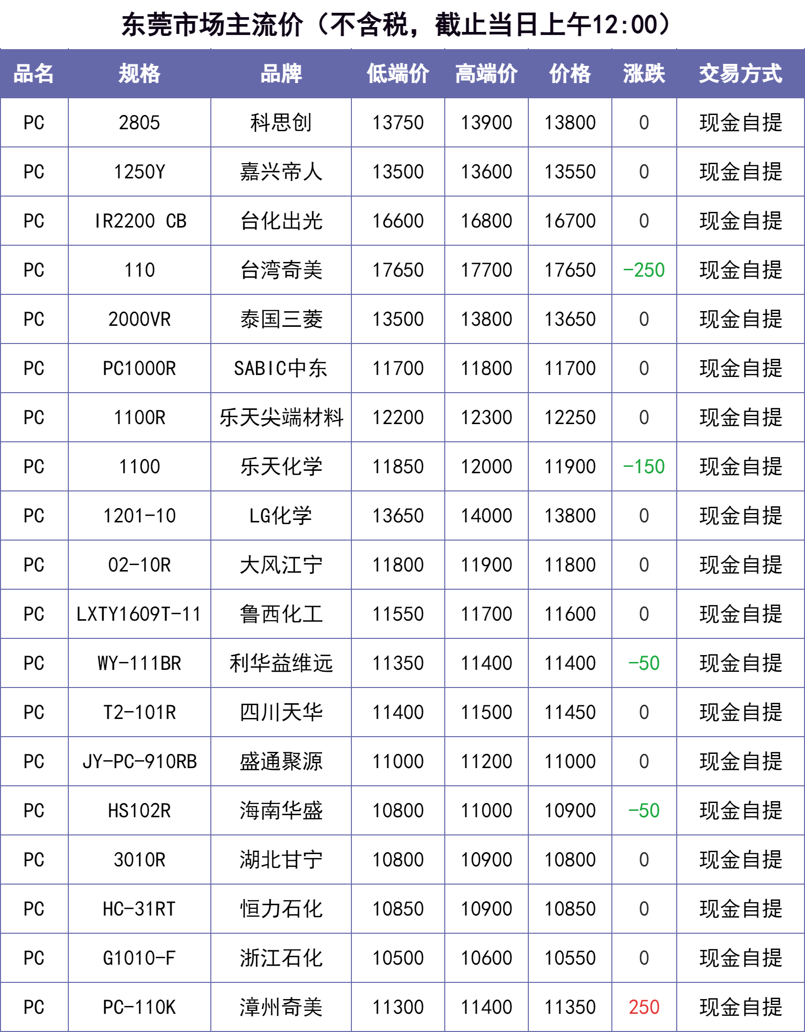 说明:除特别备注说明外,东莞、汕头等华南地区市场价默认不含税,其他地区含税。【每日新价】来源当地本土市场主流价汇总,每日12:00之前更新。不排除下午市场价格发生变化的可能。仅供参考~