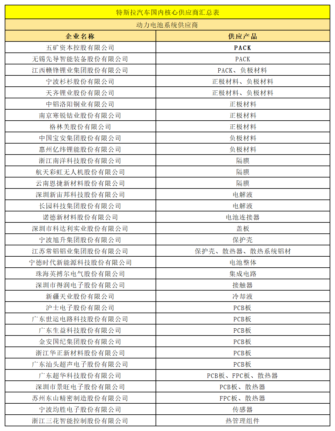 这份 【特斯拉材料供应商汇总表】,赶紧收藏!需要完整国内主流企业供应商资料的可咨询17717928004!!!