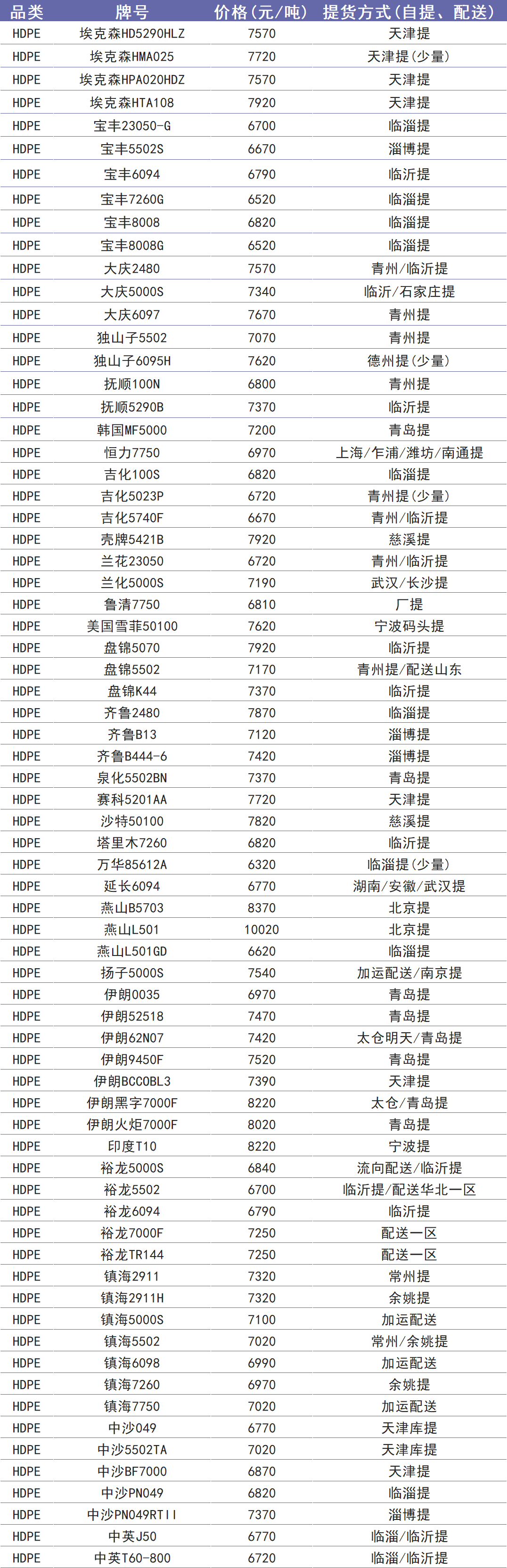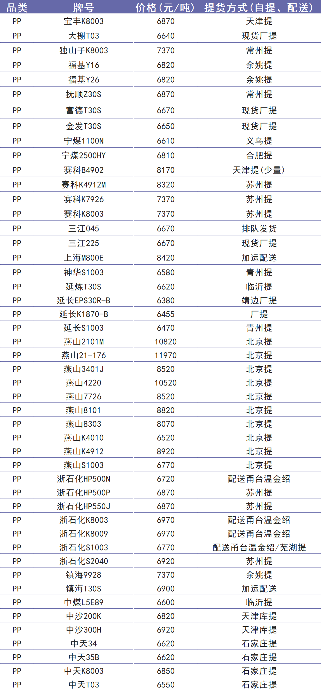 今日塑价