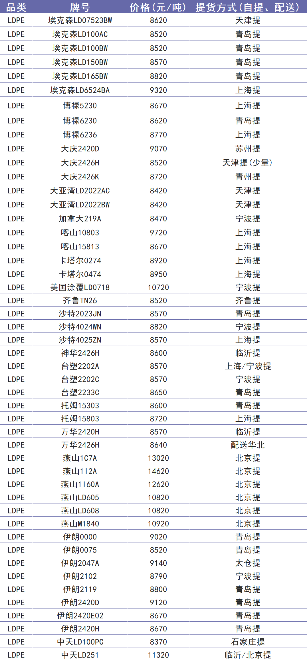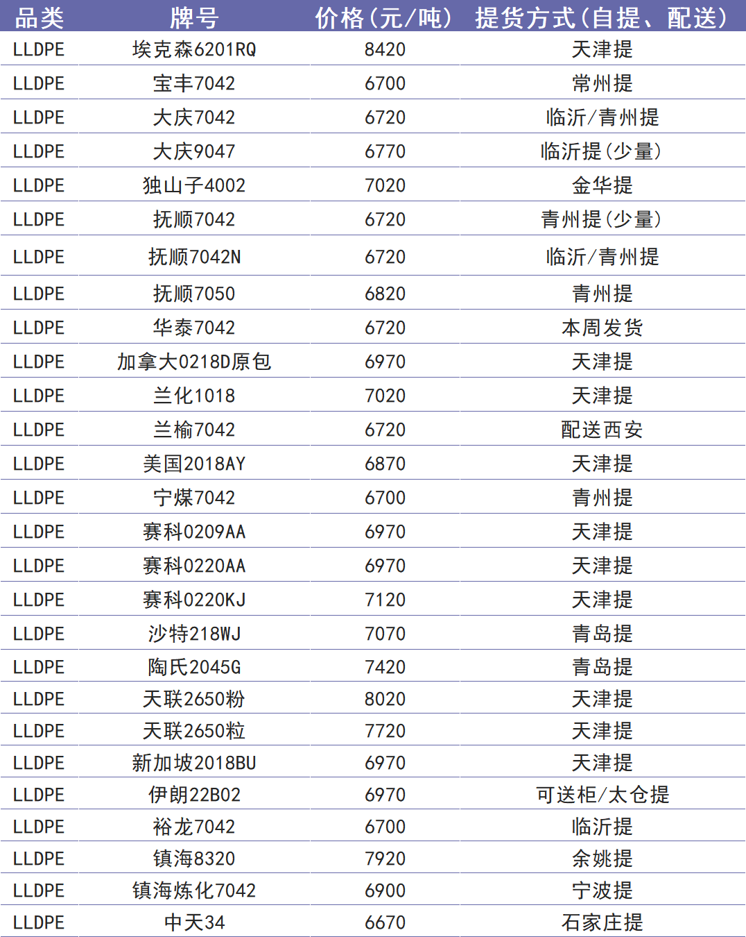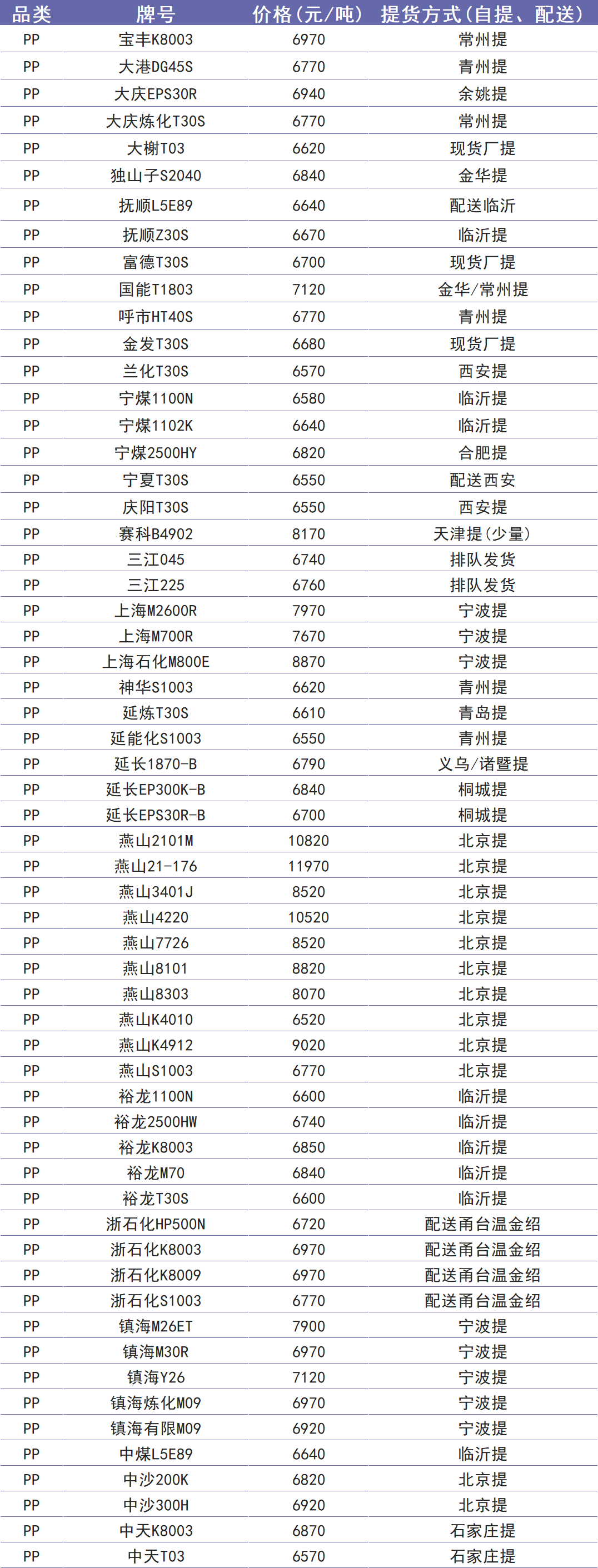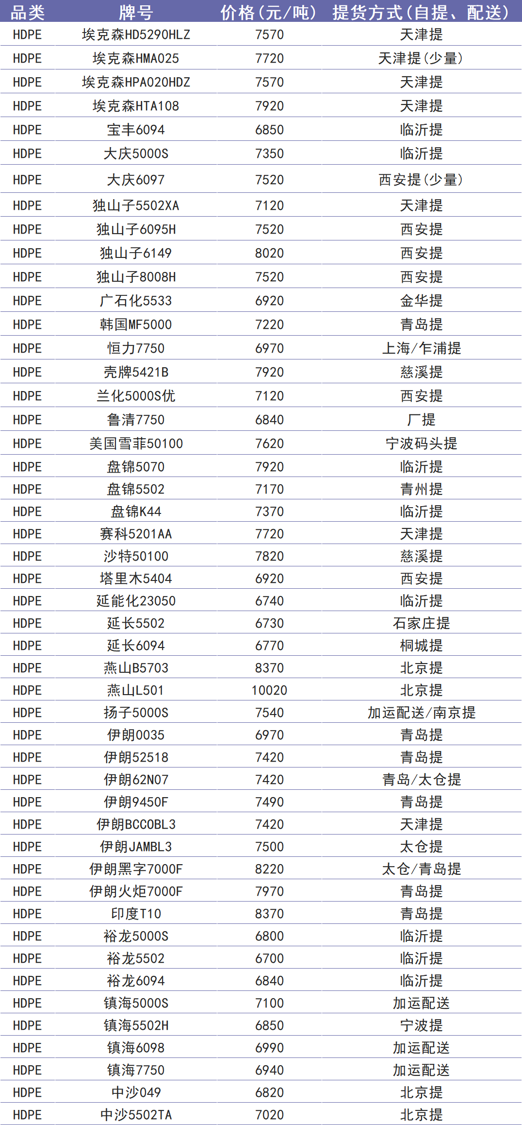 今日塑价