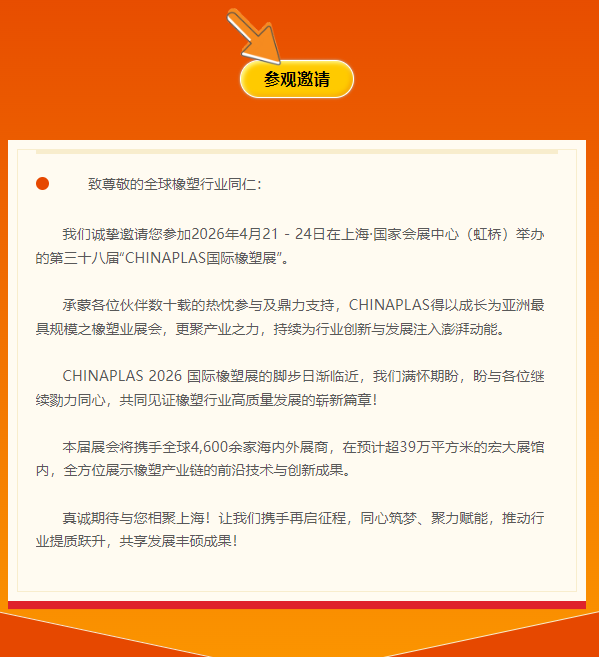 届时,全球橡塑供应商将联袂奉献一场精彩绝伦的科技盛宴,也为这幅科创画卷添上浓墨重彩的一笔。