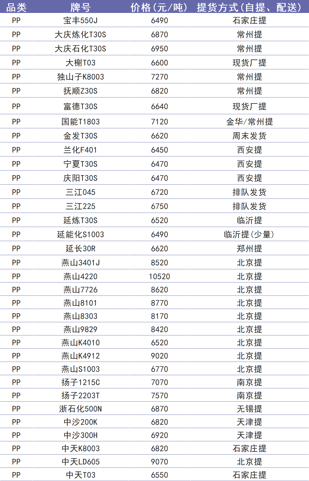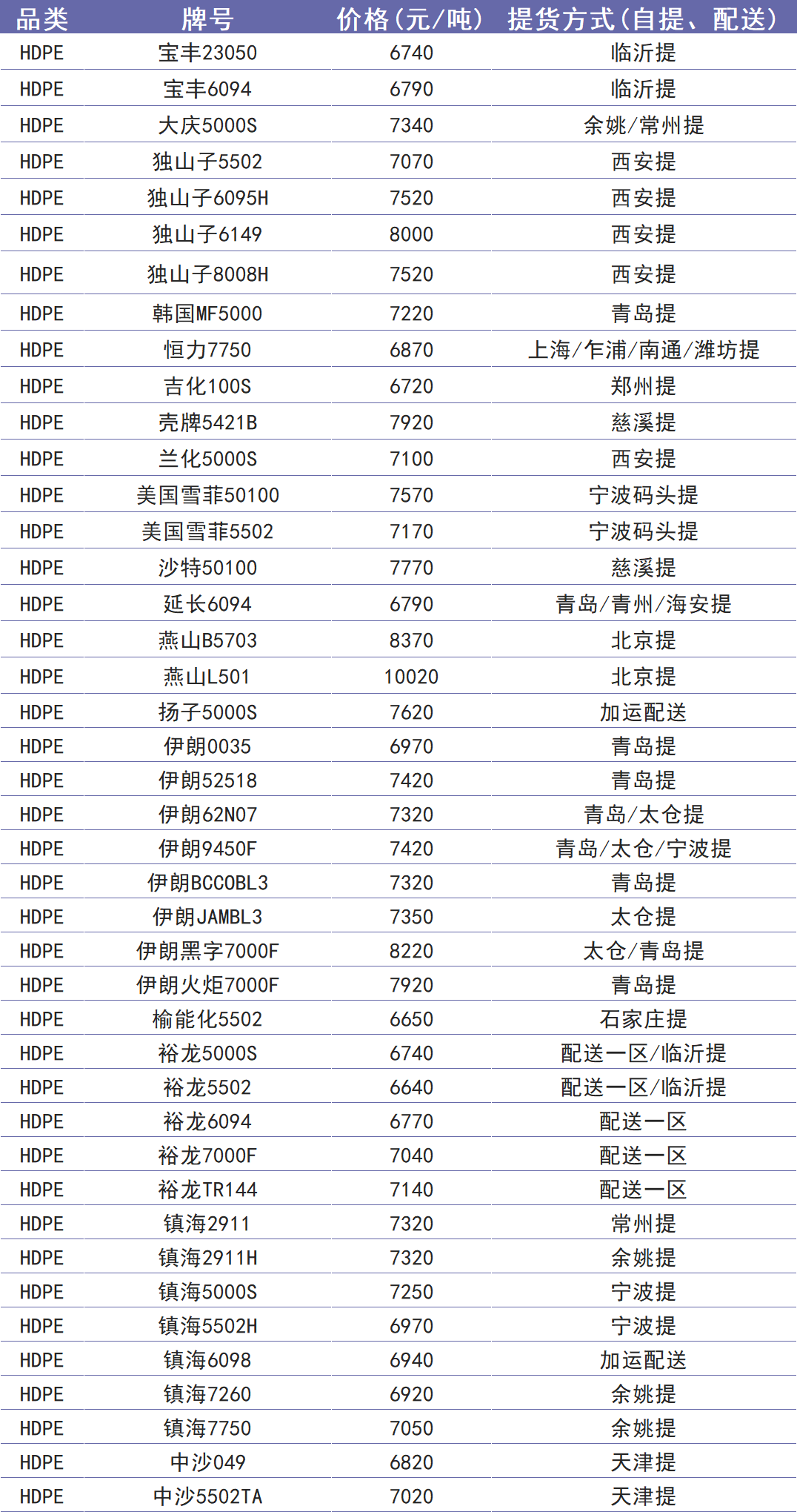 今日塑价