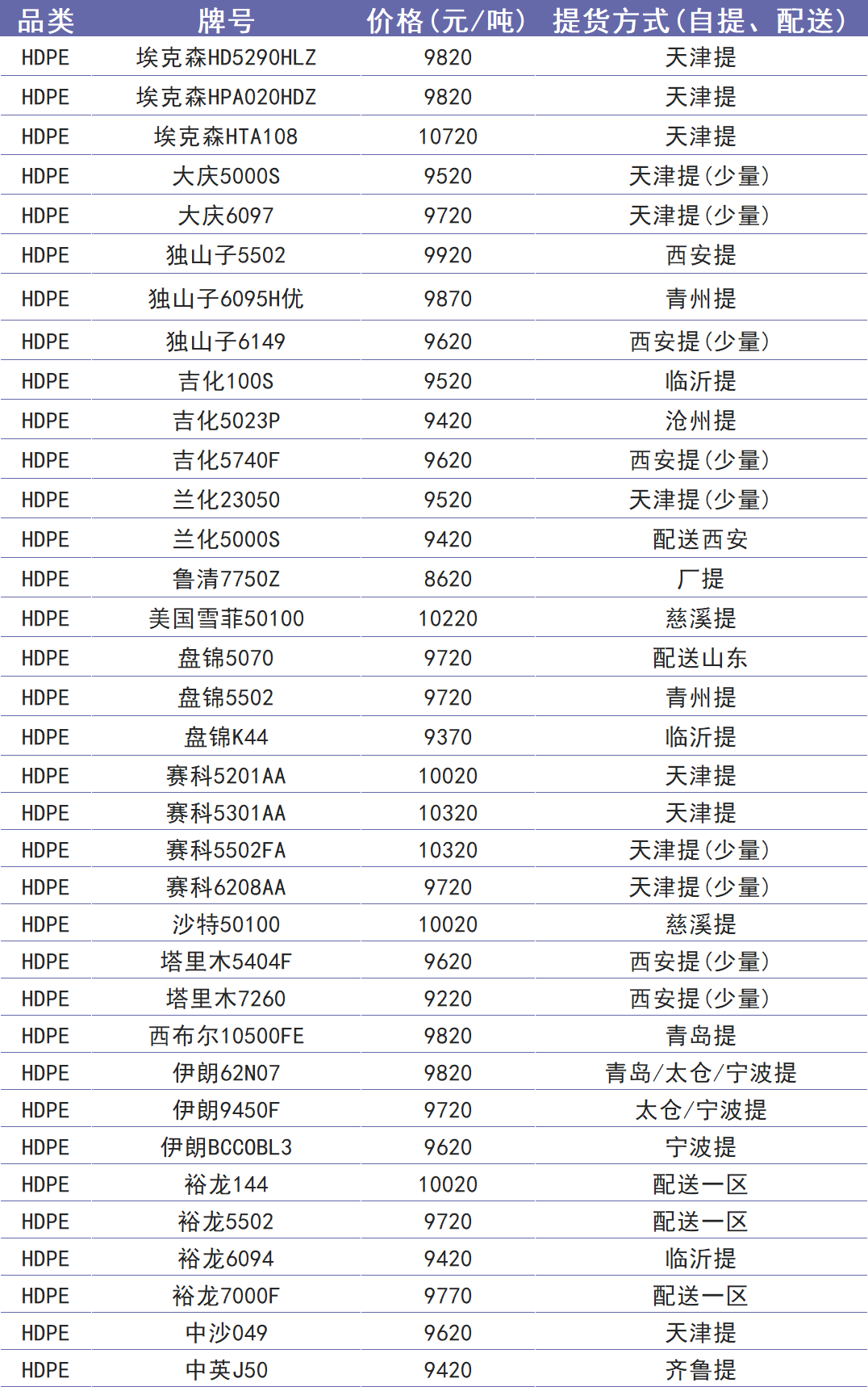 今日塑价