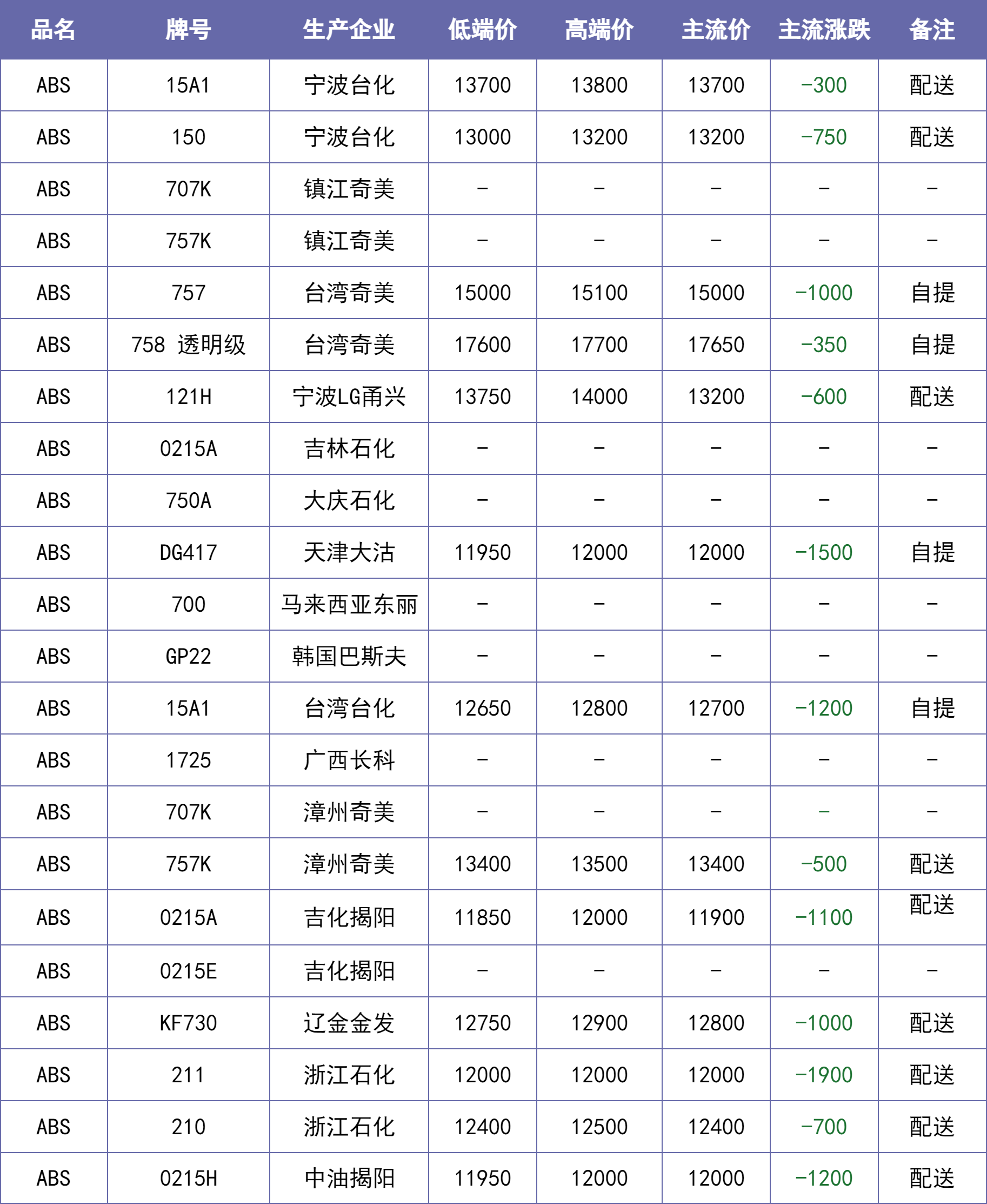 重要说明:除特别备注说明外,东莞、汕头等华南地区市场价默认不含税,其他地区含税。【每日新价】来源当地本土市场主流价汇总,每日12:00之前更新。不排除下午市场价格发生变化的可能。仅供参考~。