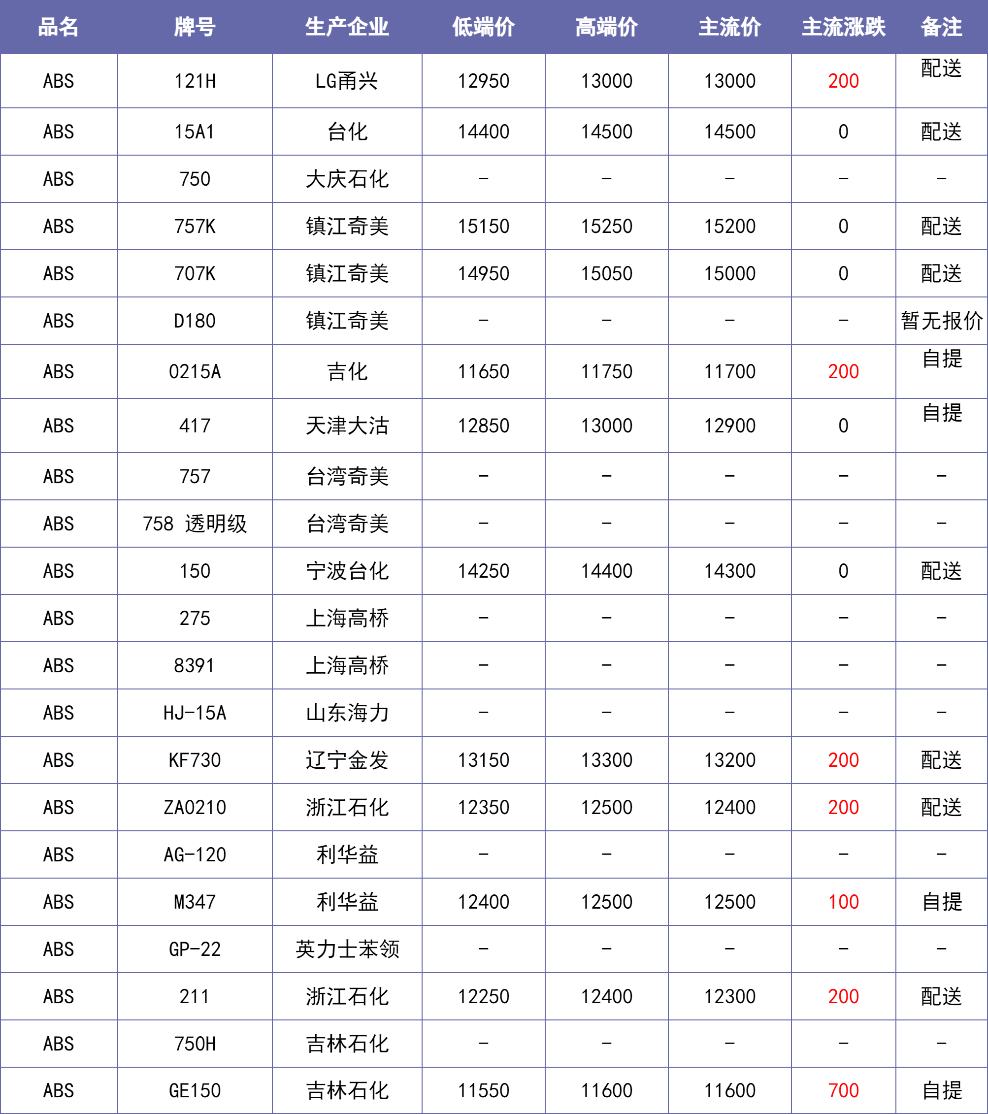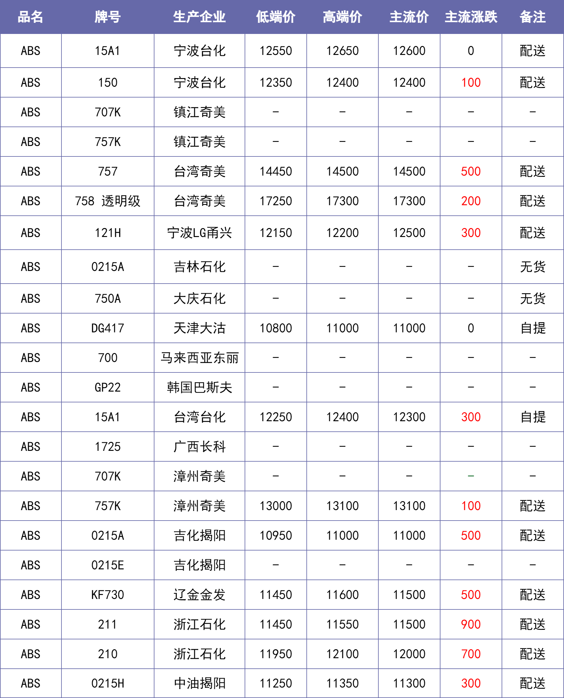 重要说明:除特别备注说明外,东莞、汕头等华南地区市场价默认不含税,其他地区含税。【每日新价】来源当地本土市场主流价汇总,每日12:00之前更新。不排除下午市场价格发生变化的可能。仅供参考~。