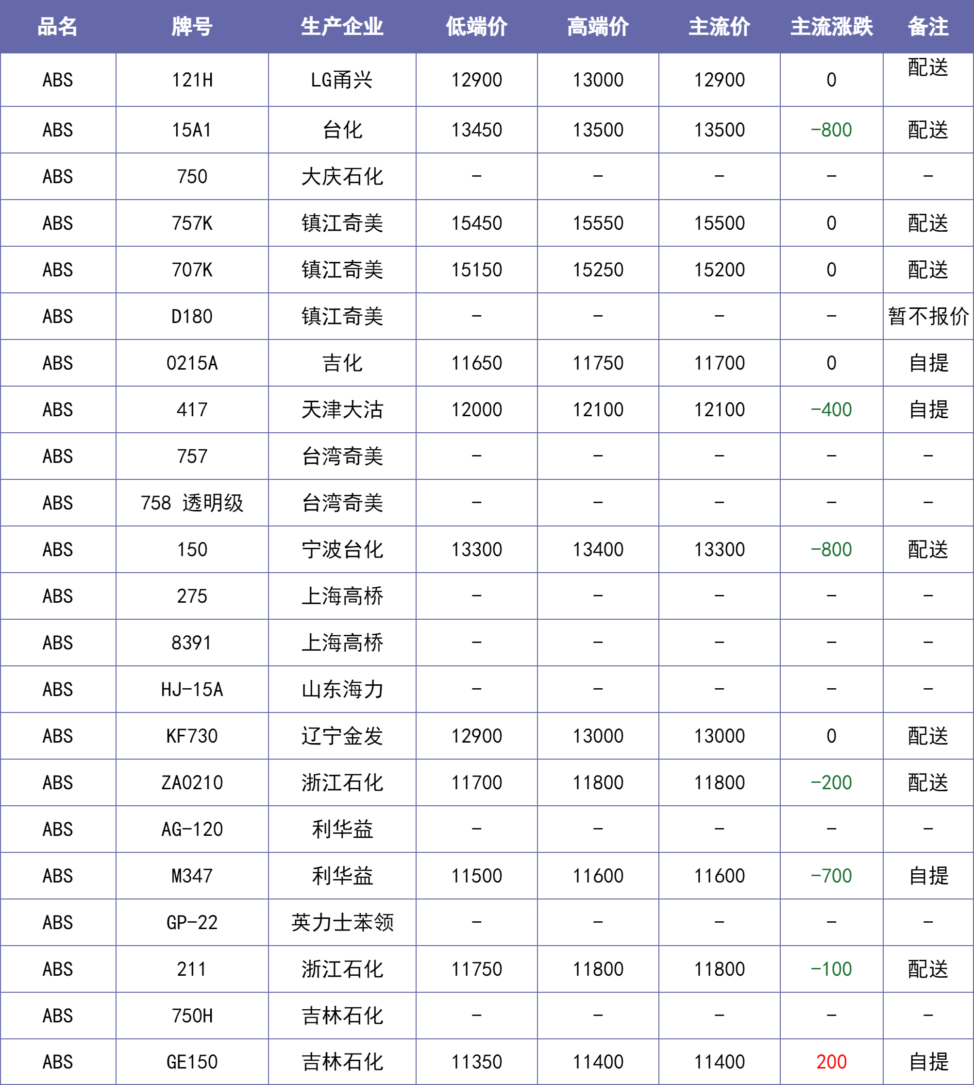 重要说明:除特别备注说明外,东莞、汕头等华南地区市场价默认不含税,其他地区含税。【每日新价】来源当地本土市场主流价汇总,每日12:00之前更新。不排除下午市场价格发生变化的可能。仅供参考~。