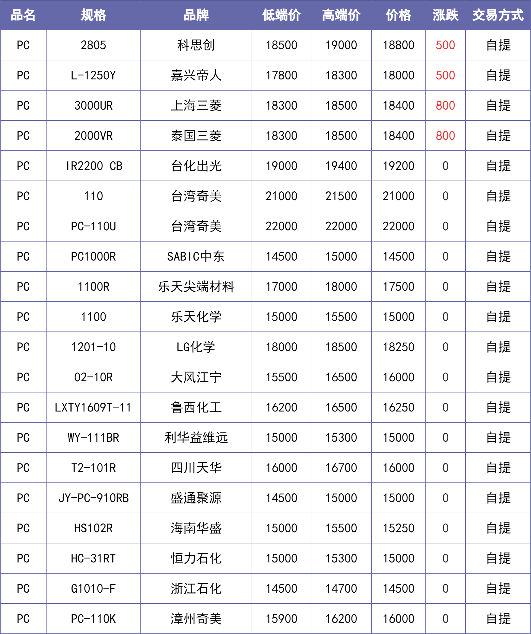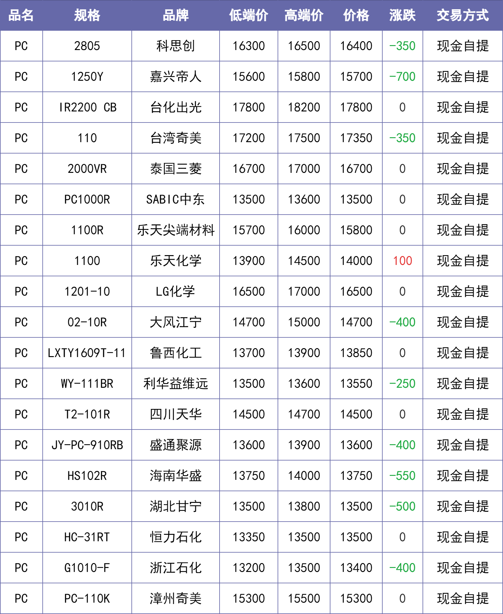 3月16日上午,国内PC主流市场互有涨跌,主流市场价格波动100-800元/吨。