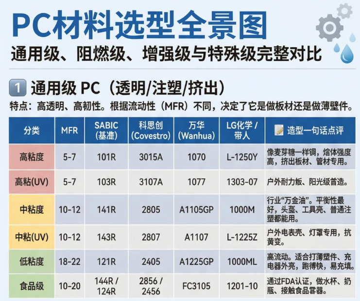 这里整理了一份《2026版 全球主流PC牌号综合对标整合表》。涵盖SABIC、科思创、LG化学、万华、帝人等主流品牌。
