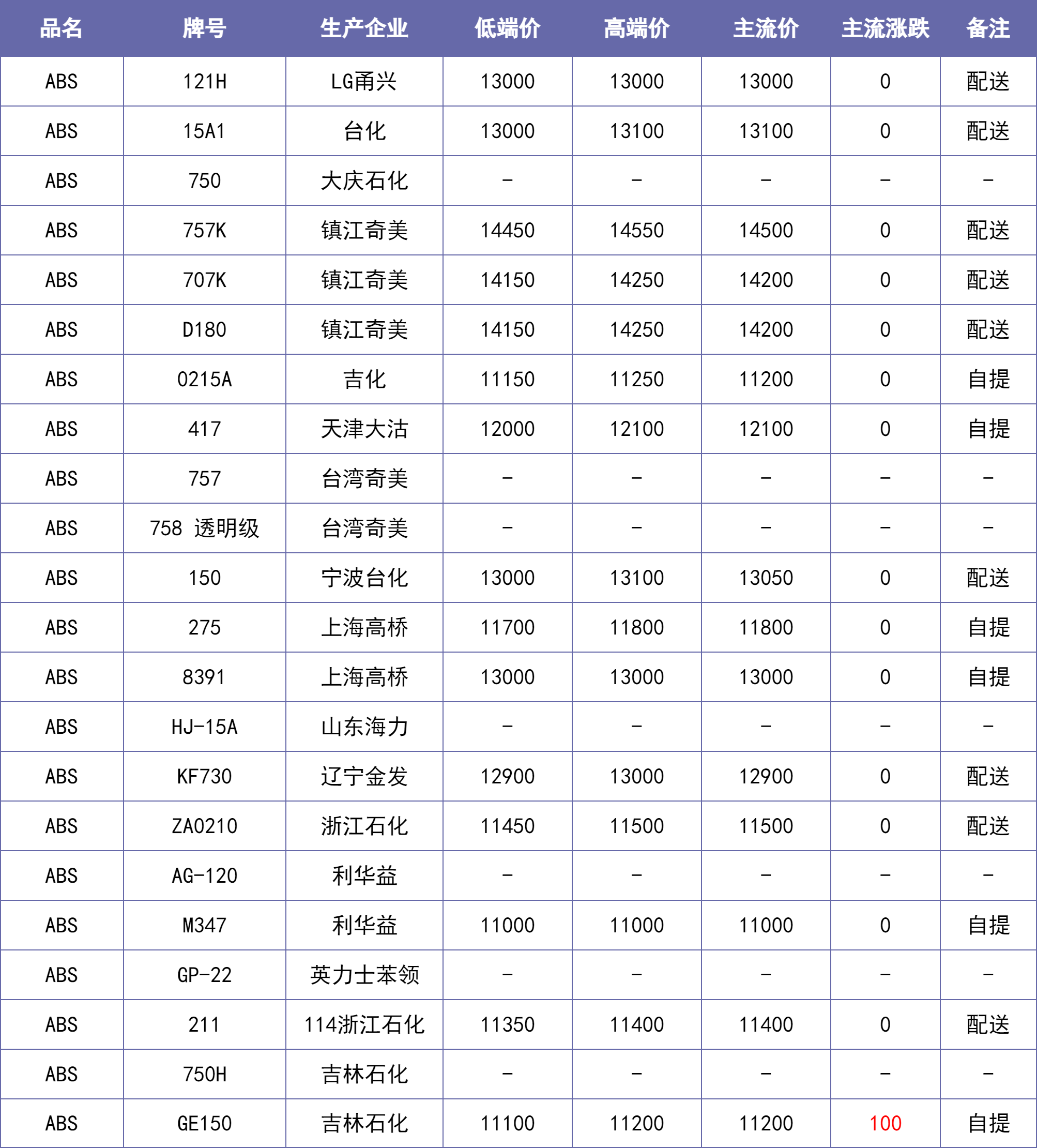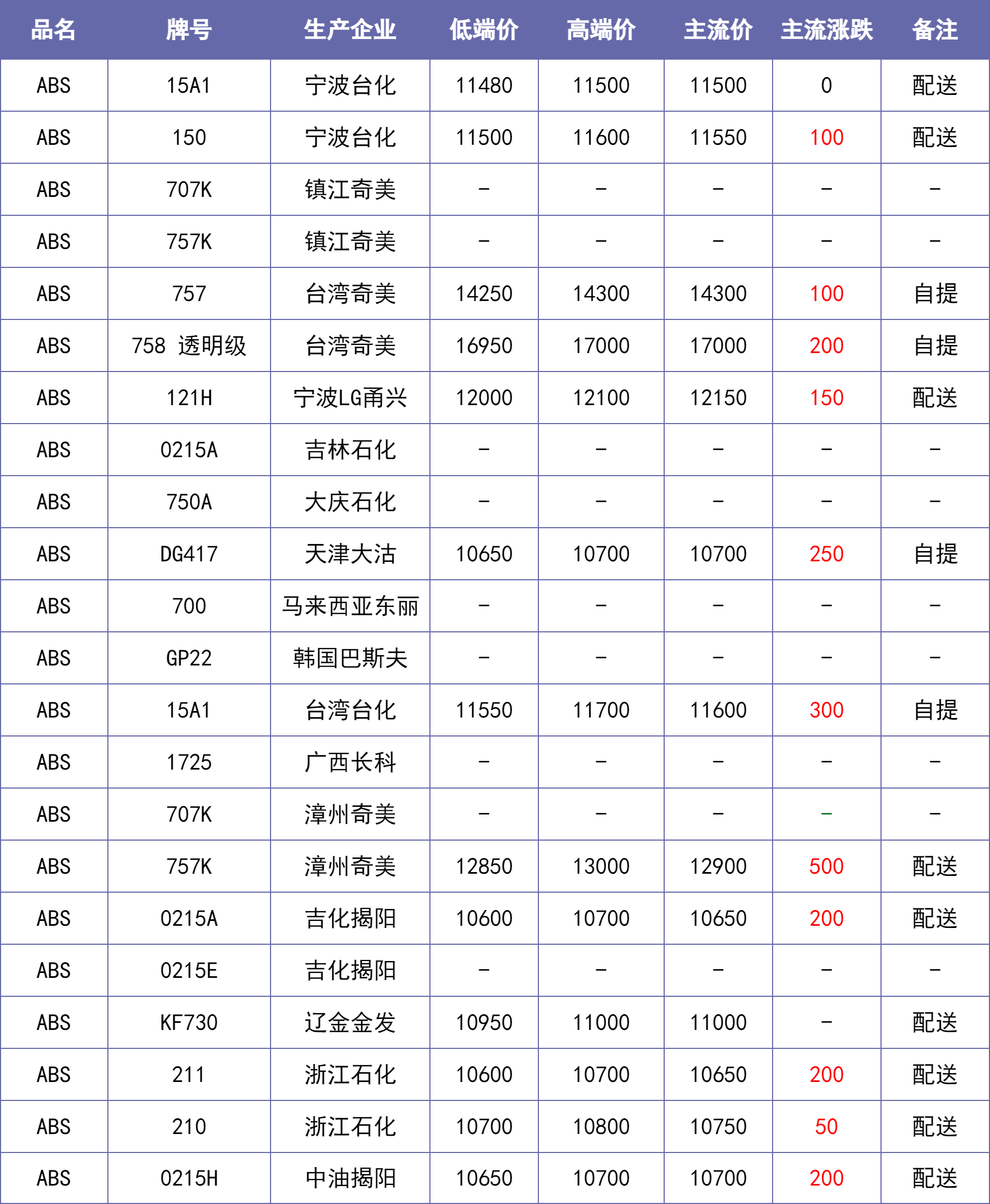 重要说明:除特别备注说明外,东莞、汕头等华南地区市场价默认不含税,其他地区含税。【每日新价】来源当地本土市场主流价汇总,每日12:00之前更新。不排除下午市场价格发生变化的可能。仅供参考~。