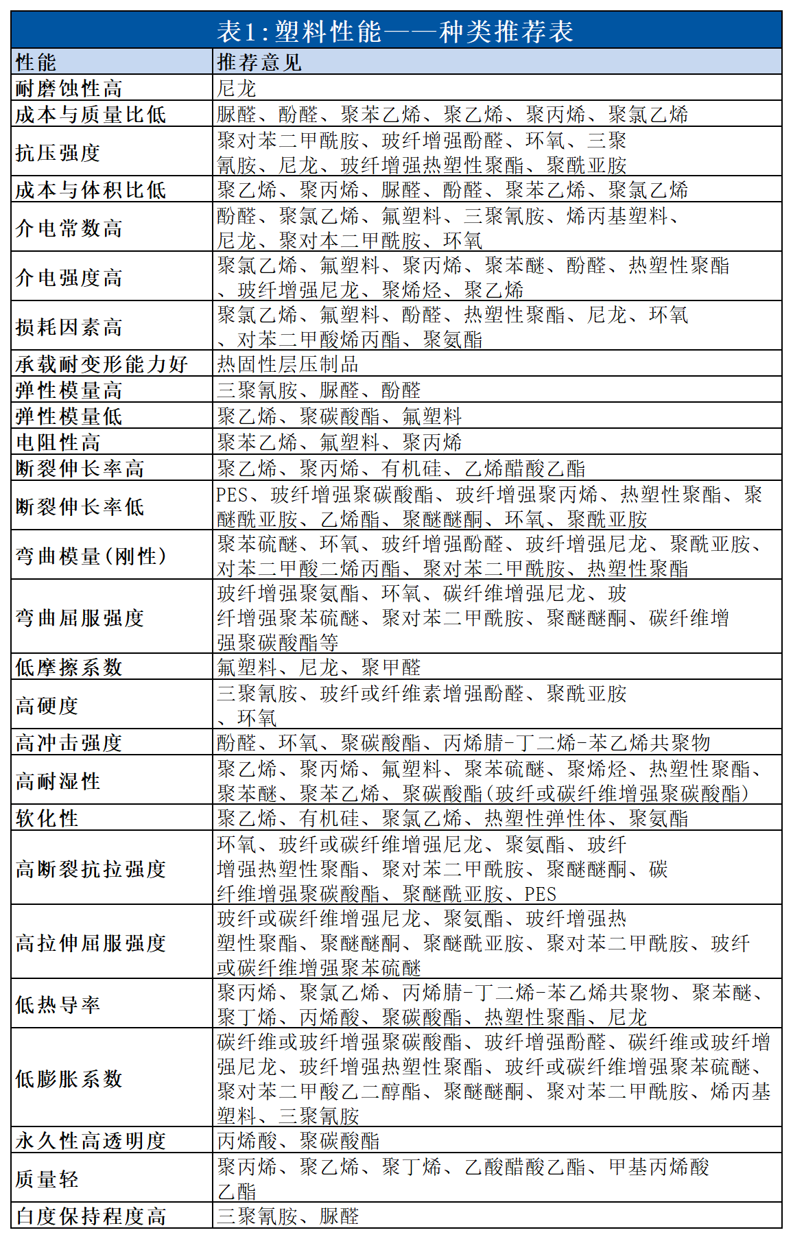 客户问性能,3张表搞定!塑料对比与用途汇总
