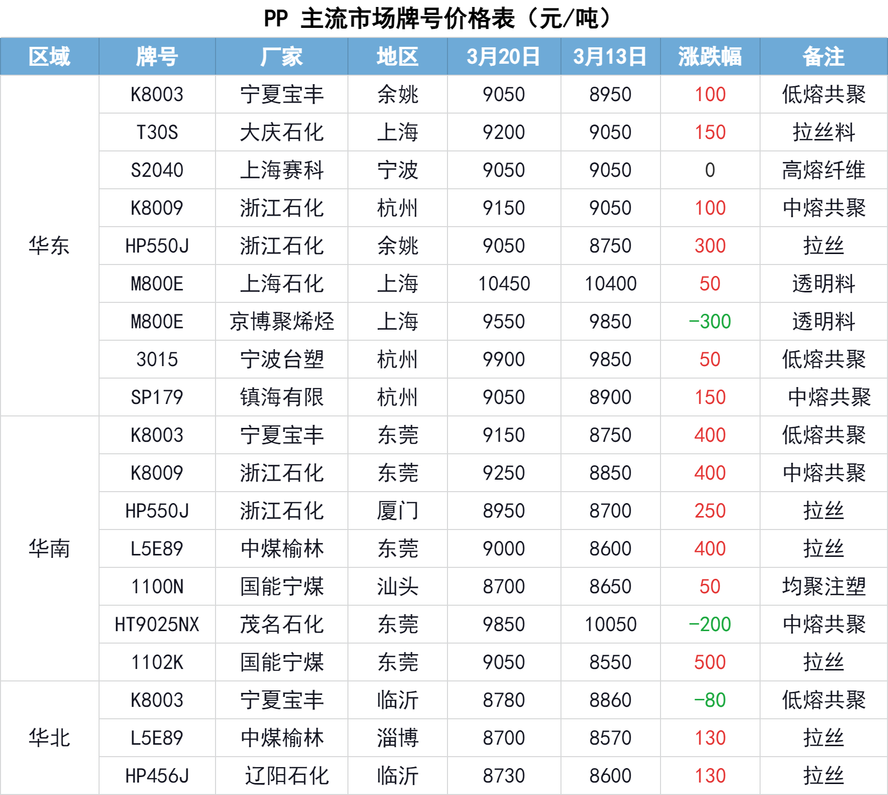 本周PP市场价格上涨为主,主流牌号市场价波动50-500元/吨。不仅新增天津渤化、中海壳牌、浙江石化、裕龙石化等多套停车,叠加镇海炼化、浙江石化、茂名石化等降负荷,聚丙烯损失量涨至历史高位,叠加进口到港量大幅减少,供应呈现大幅缩量。下游制品行业呈现两极分化趋势,大中型企业备货相对充足,随着全线复工后开工维持稳中增长趋势;但中小型企业受到原料价格急速拉升影响,减产甚至停工成为应对巨变的常规操作。