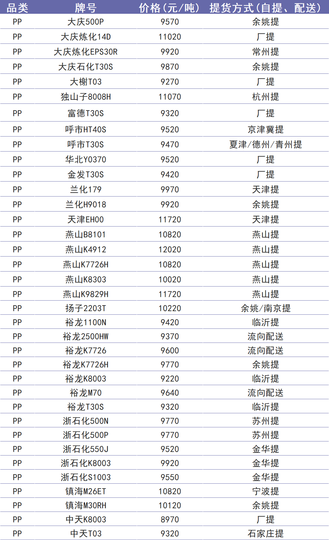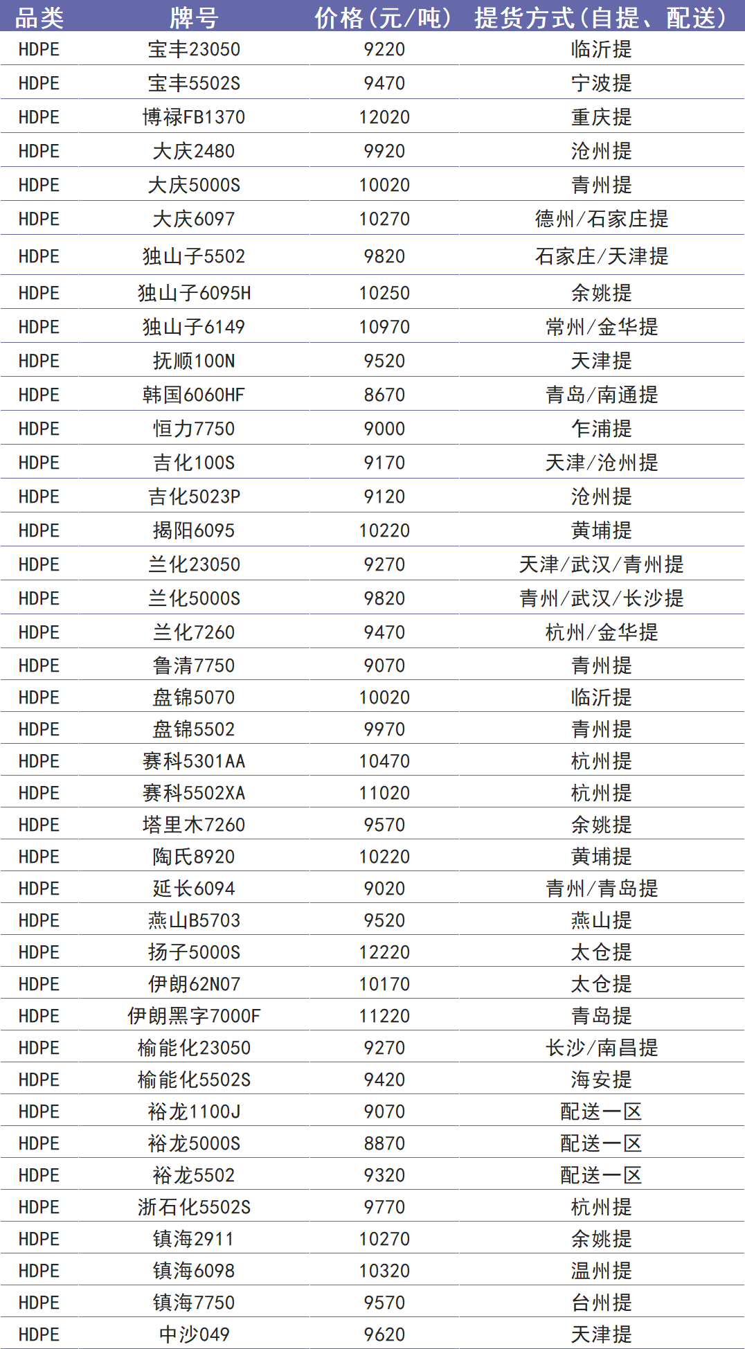 今日塑价